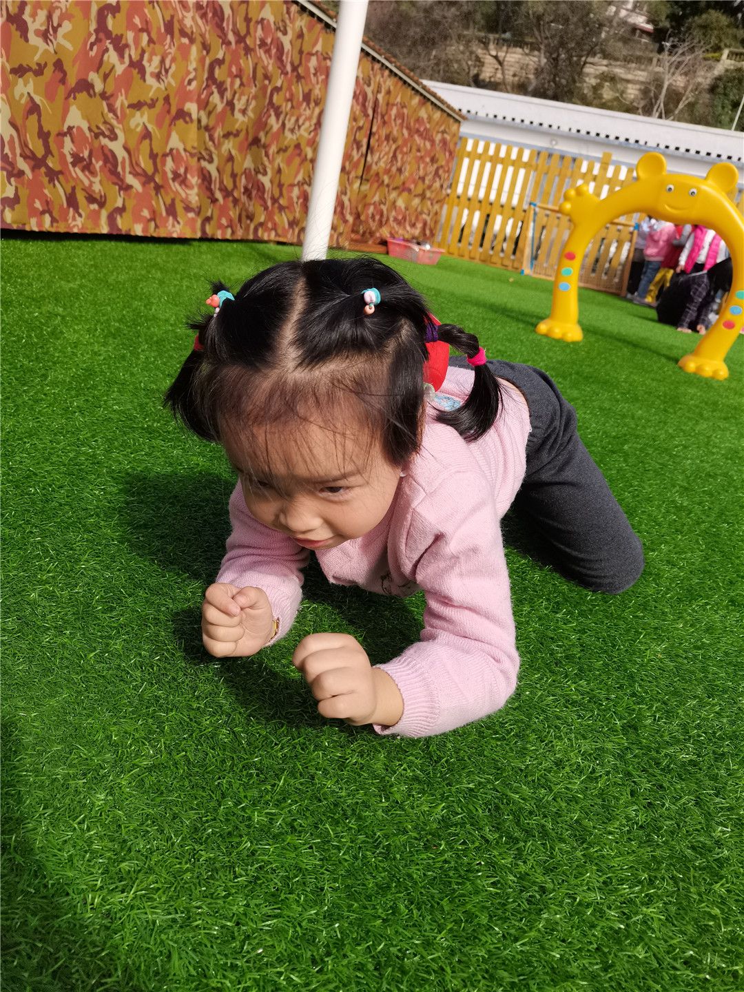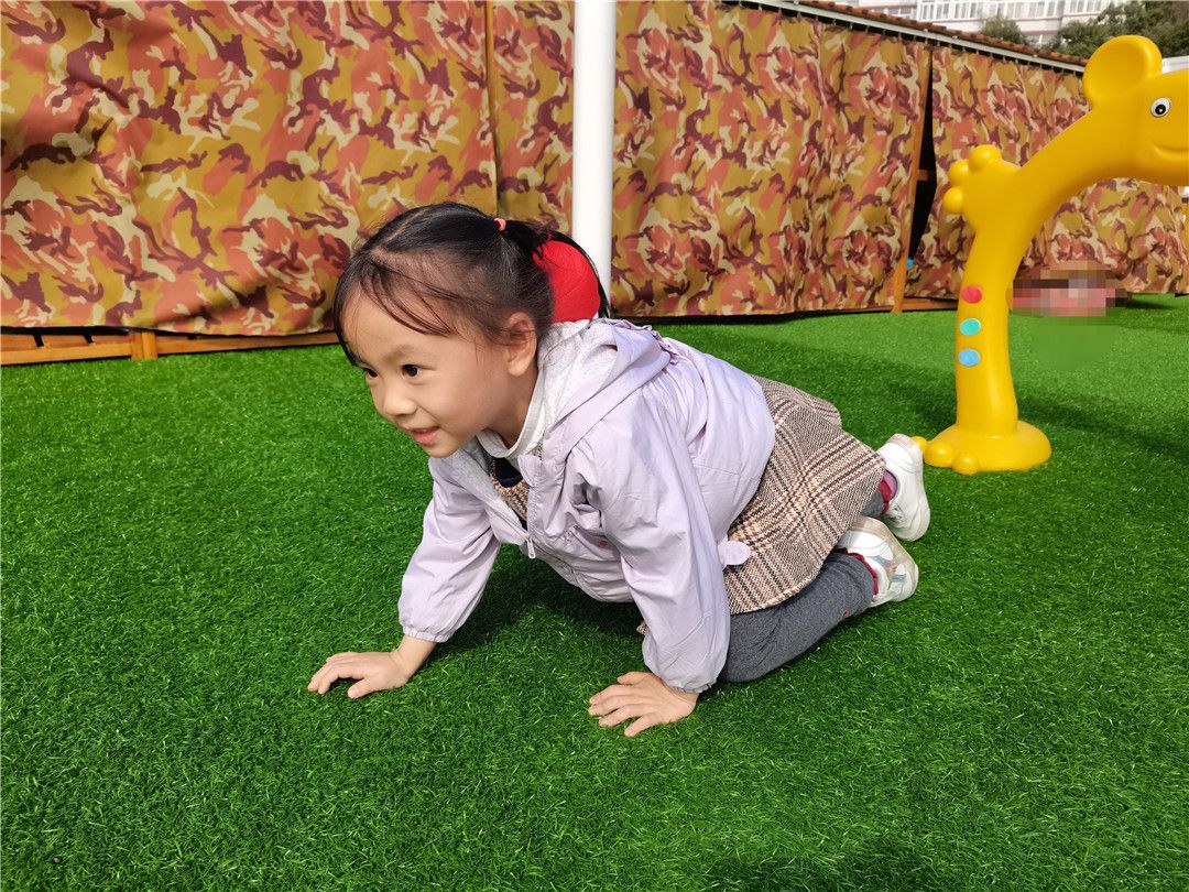 沙包背在身上,向前爬,像乌龟一样运粮食咯。