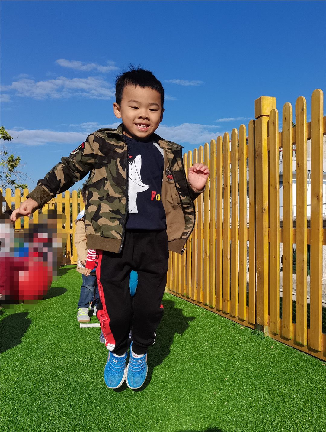 看准咯,一、二、三~哇!飞得好高呀!