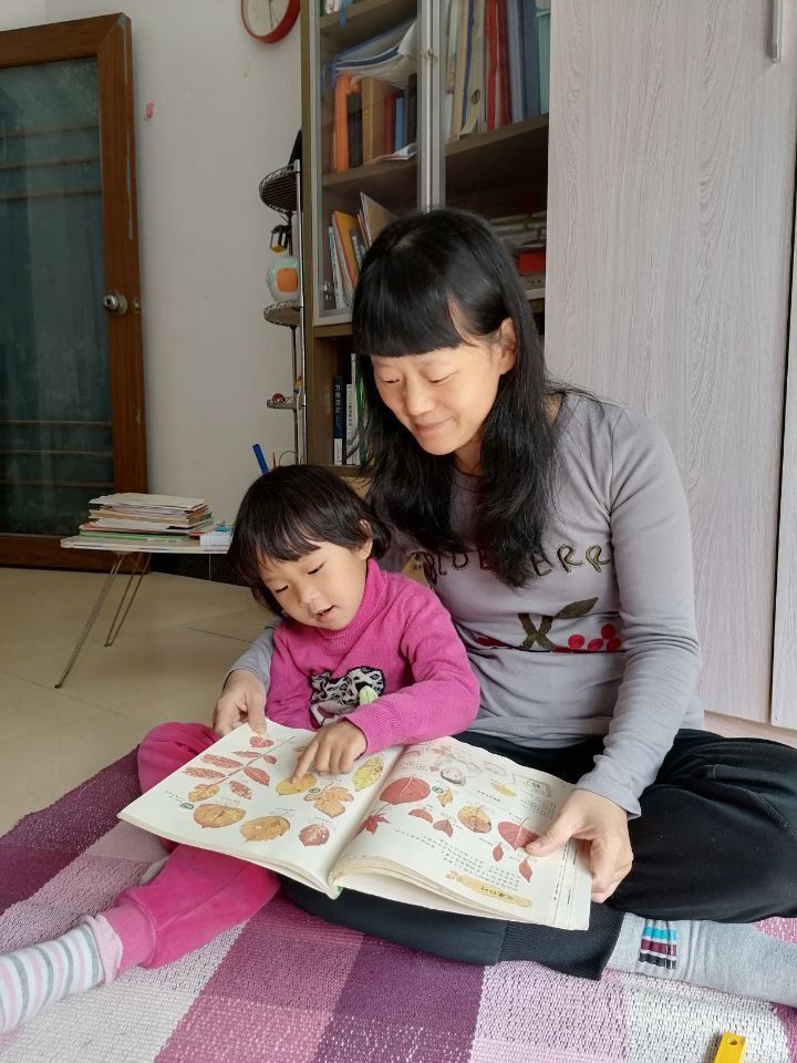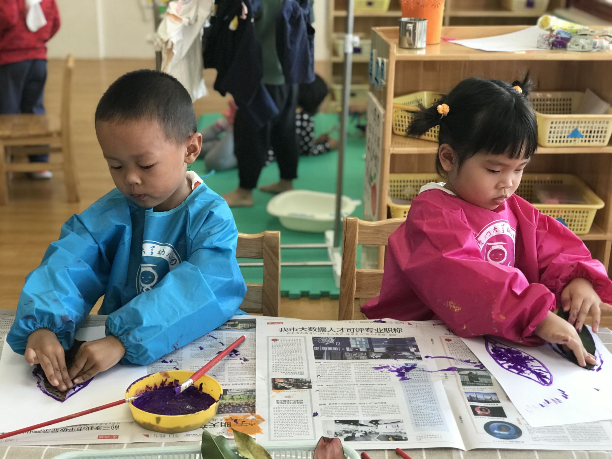 苒苒:哈哈哈,我要把落叶变成一颗大树,先来涂点紫色颜料,然后再换个颜色,多美的一幅画!
