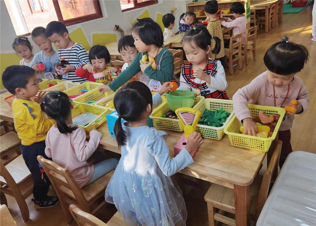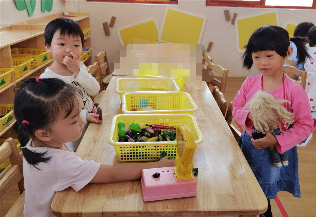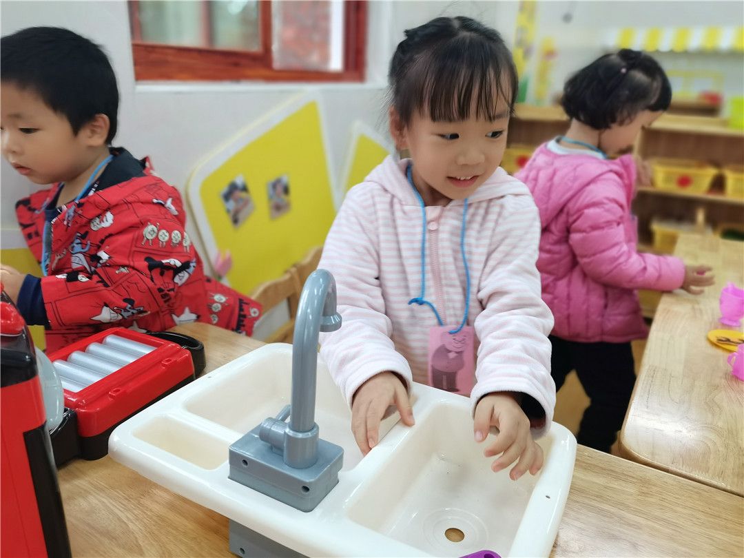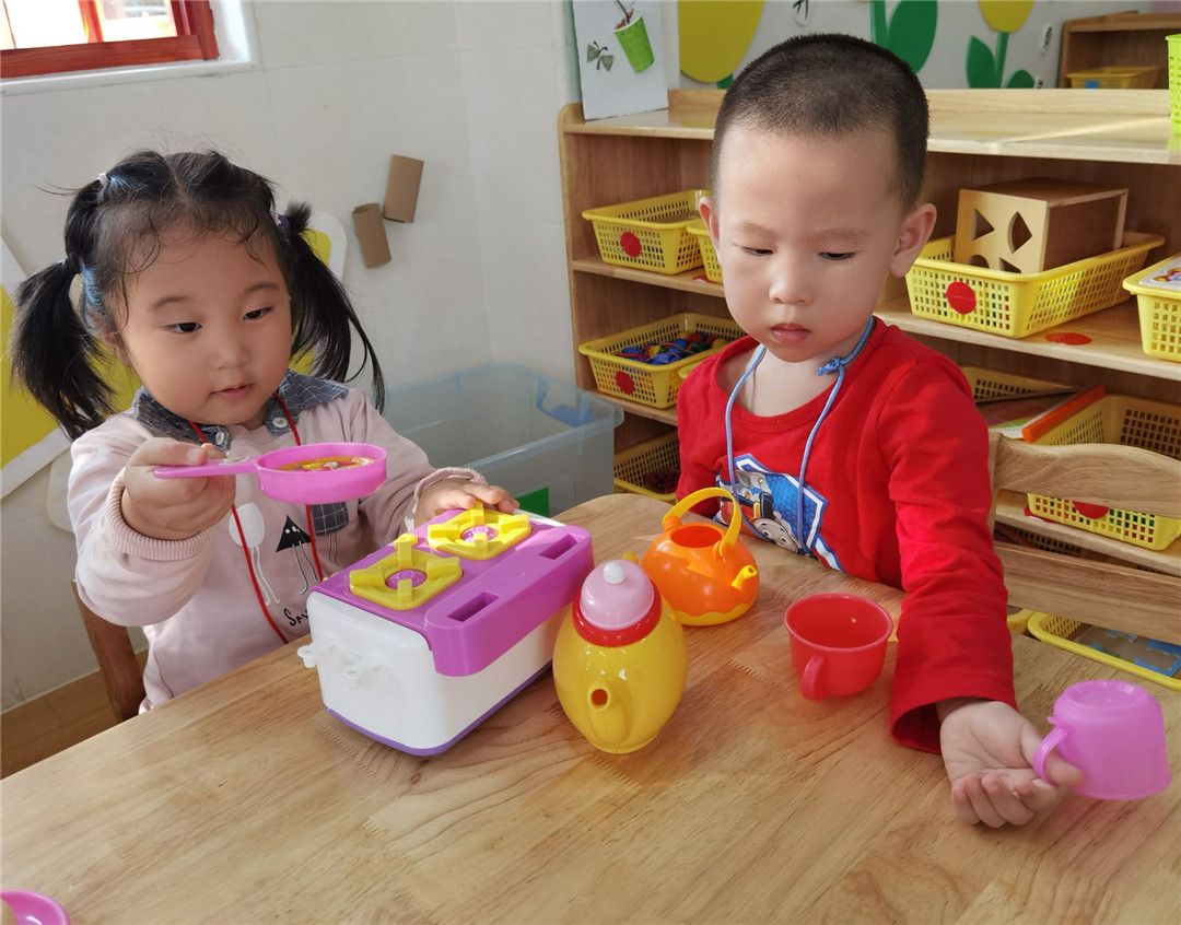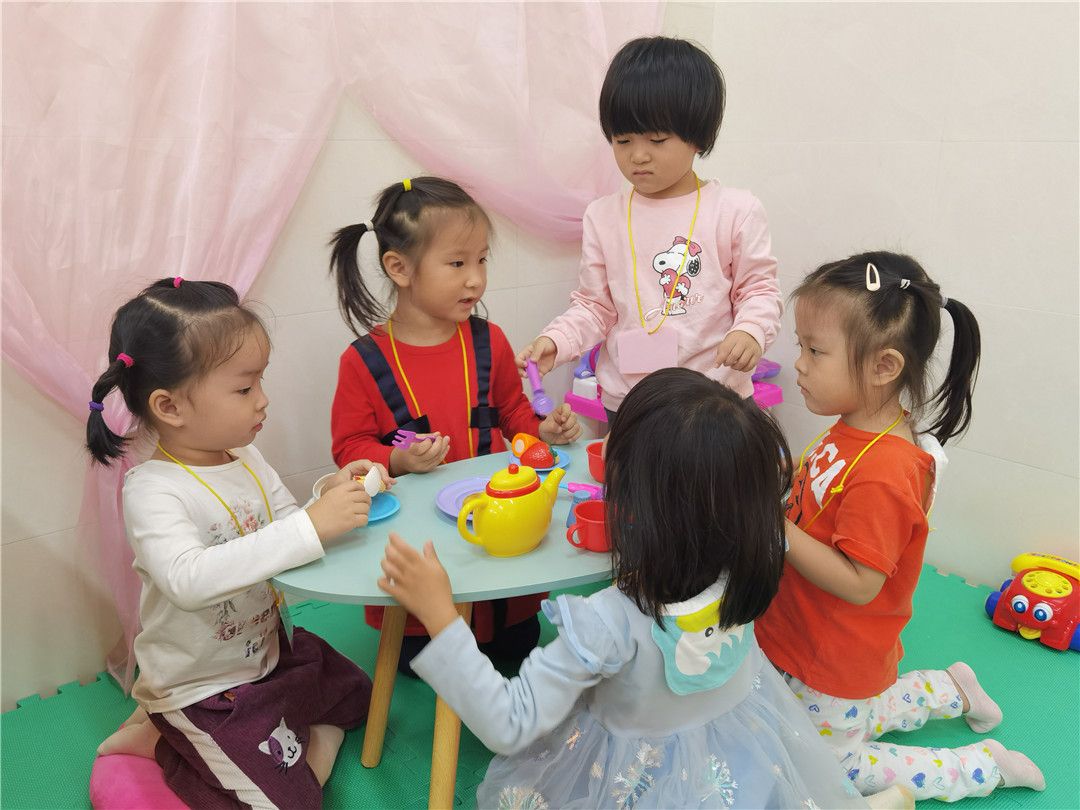 孩子们在各自的娃娃家扮演着家长的角色,把“小日子”过的有滋有味,活灵活现。