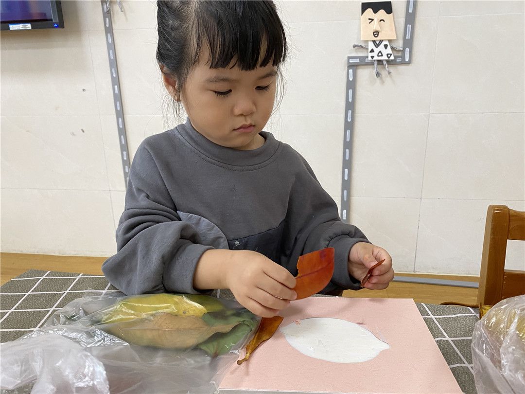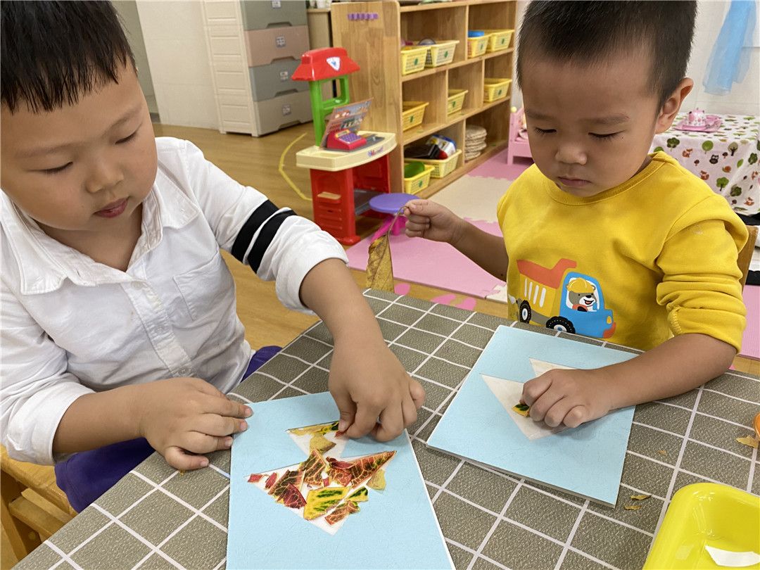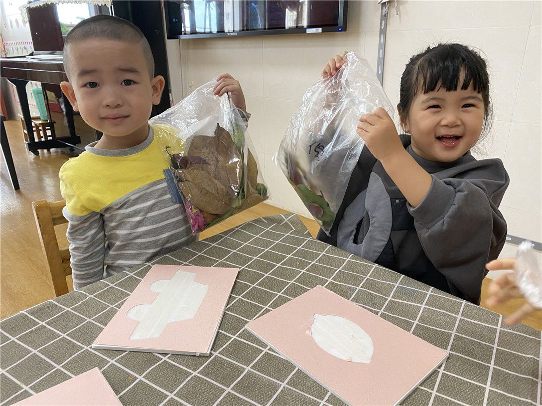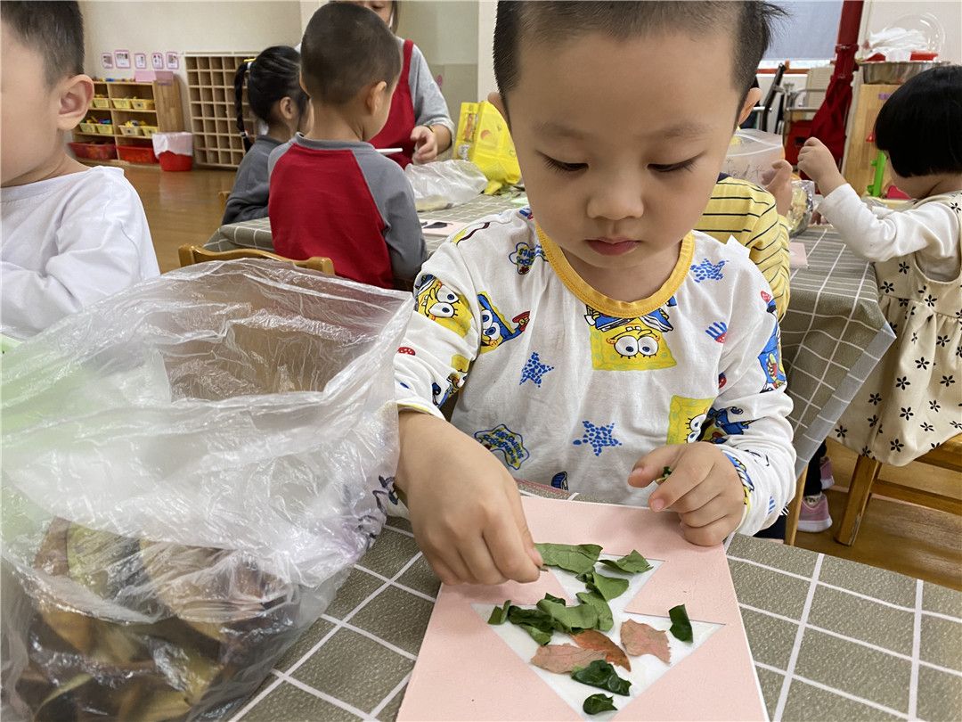一片叶子一份情,这是绿叶对根的情意。通过自己亲手收集落叶到制作成美丽的作品,孩子们不仅在动手操作上得到了锻炼,并且体会到了成功的喜悦。在“玩中学”,希望萌娃们能像这五彩斑斓的树叶一般,度过一个五彩的童年。