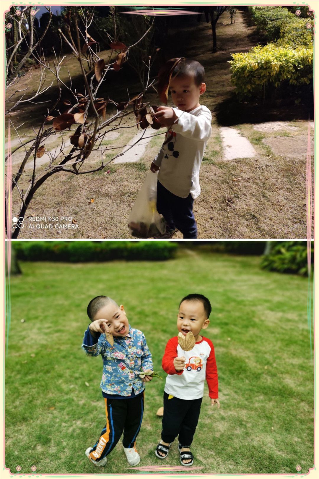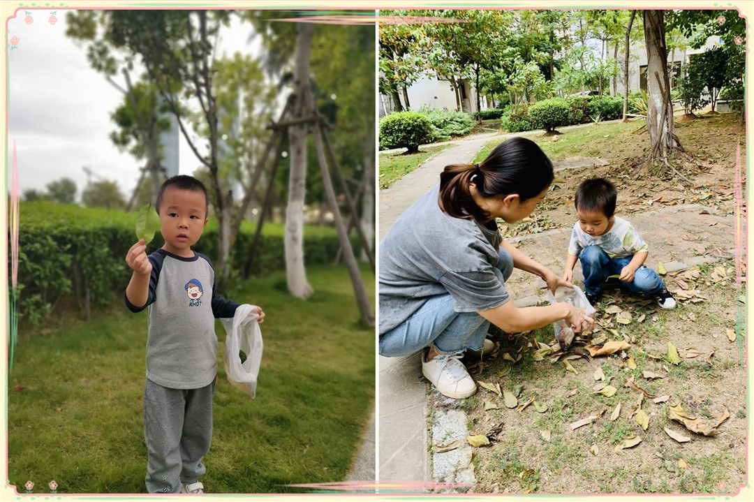 我们在上学的路上、美丽的幼儿园,寻找秋天的落叶。