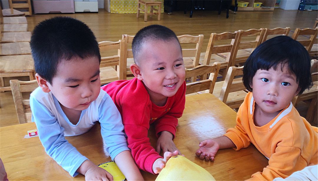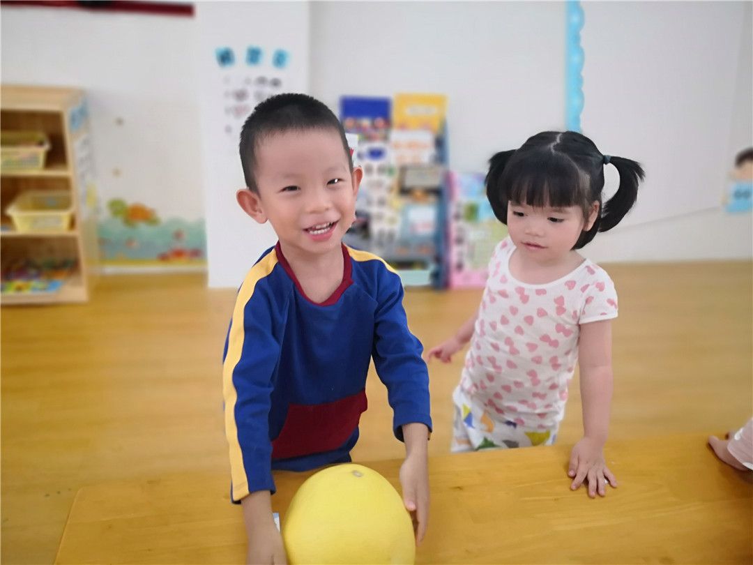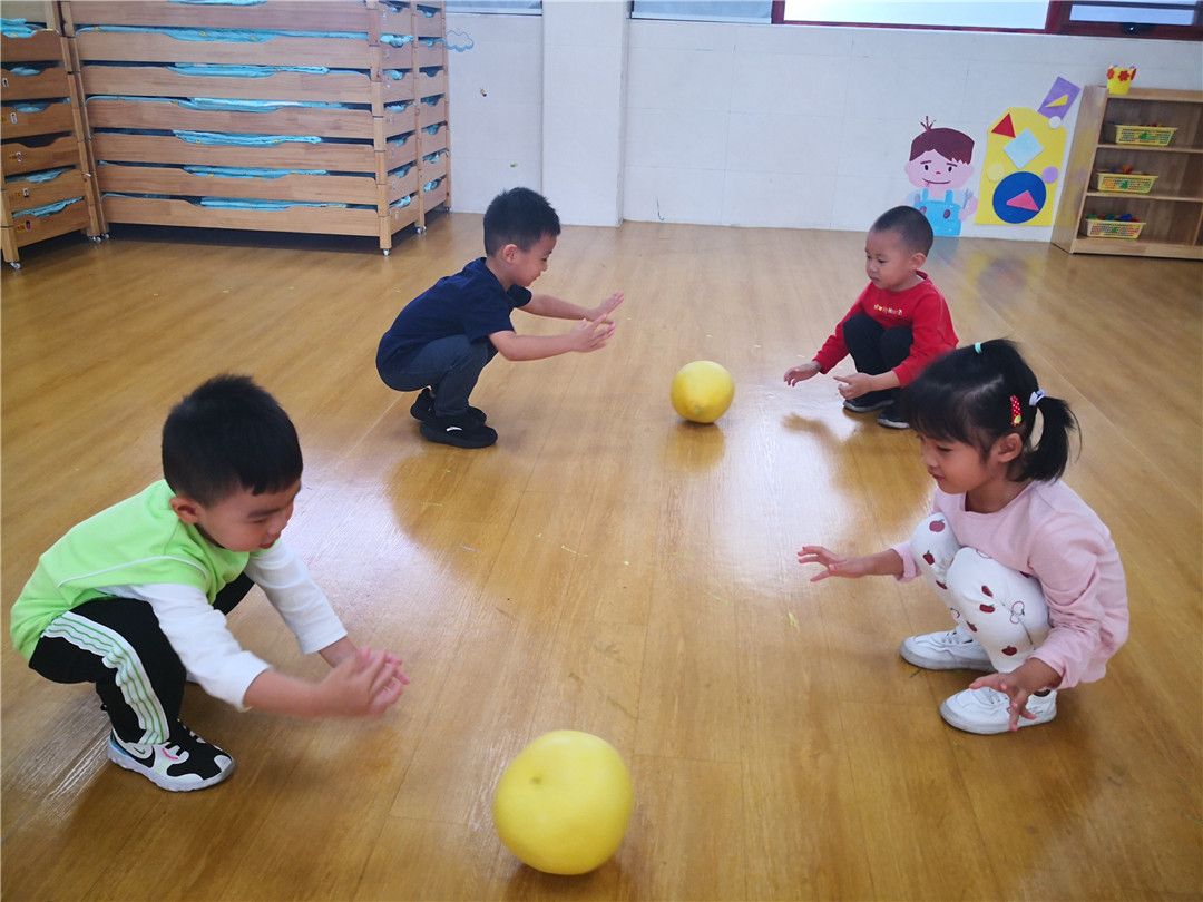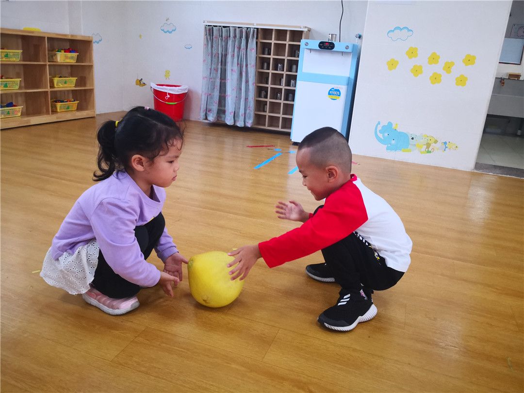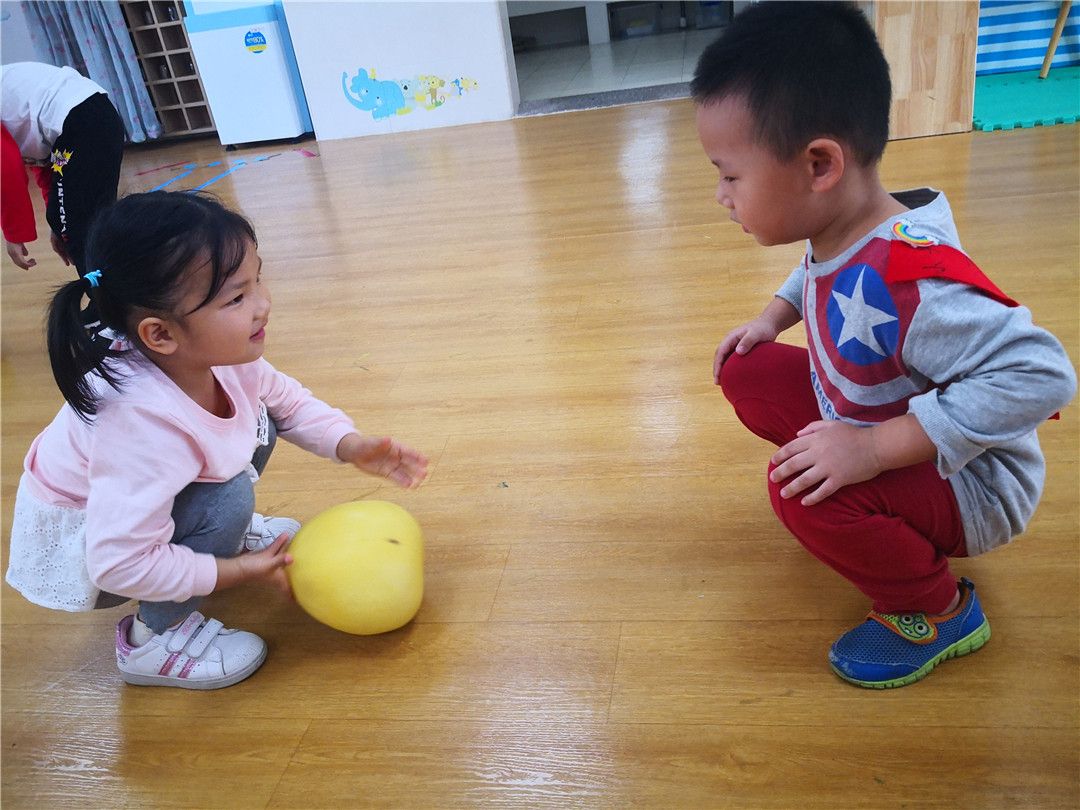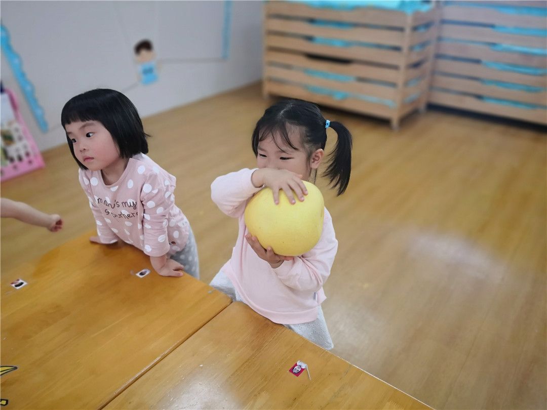 甯甯:老师,老师,柚子圆圆的像皮球一样,哈哈哈,可以滚起来哦!