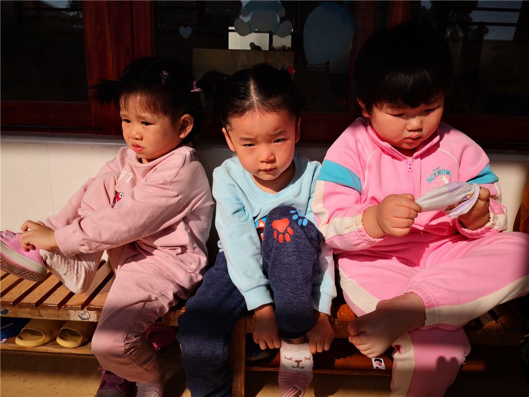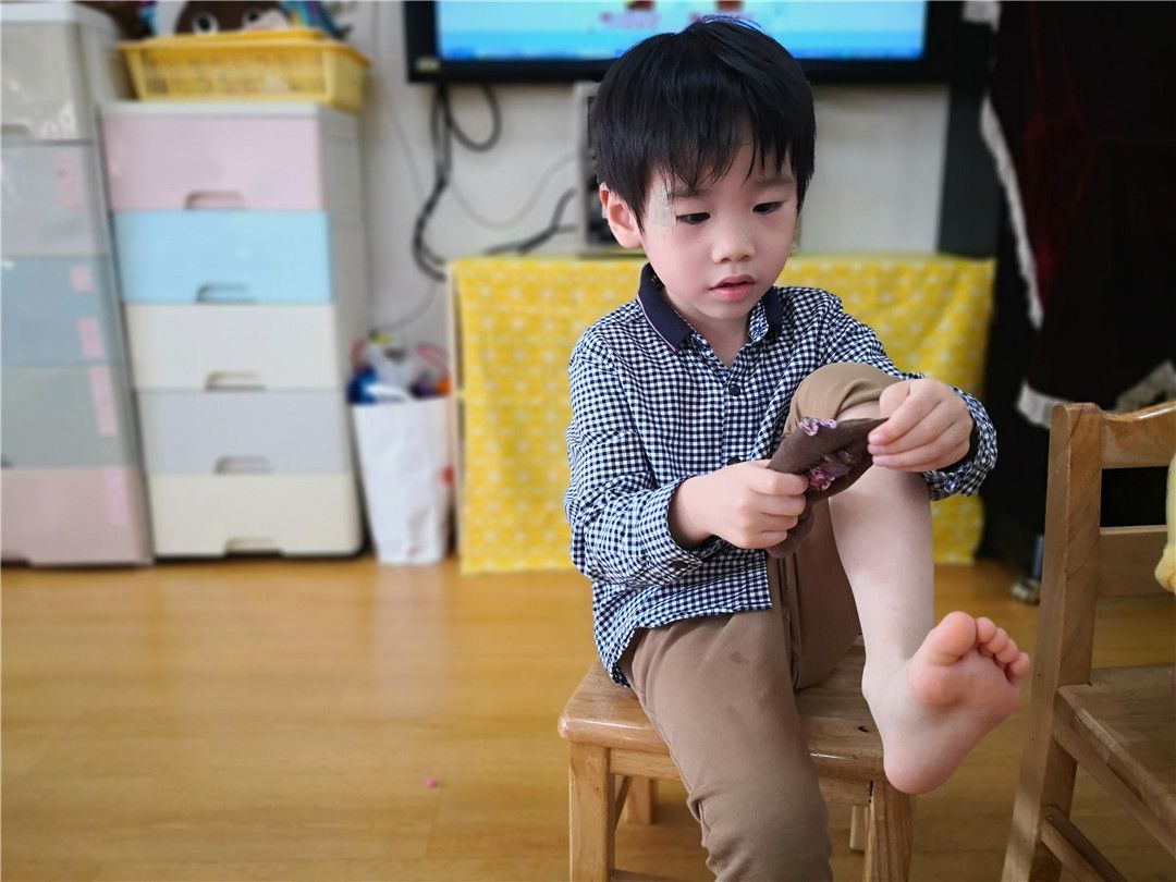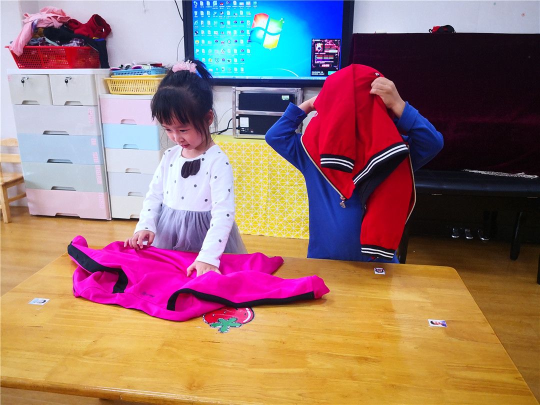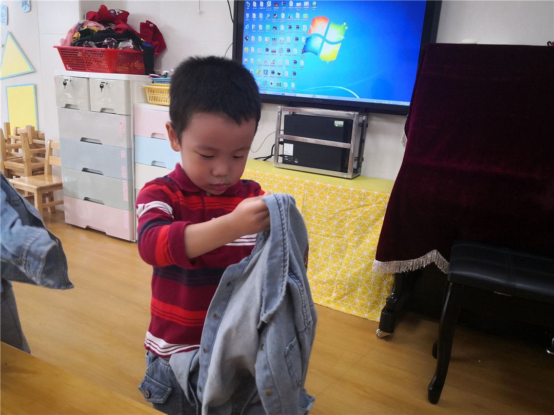 刚学会穿衣和鞋袜的小家伙们特别地得瑟。小谦说:“哈哈哈,我穿得最好!”冉冉说:“才不是,是我穿得最快。”浩浩凑上来说:“那我们比比看谁穿得最好吧。” 浩浩的提议立刻得到了其他孩子们的同意。瞧,他们开始了……
