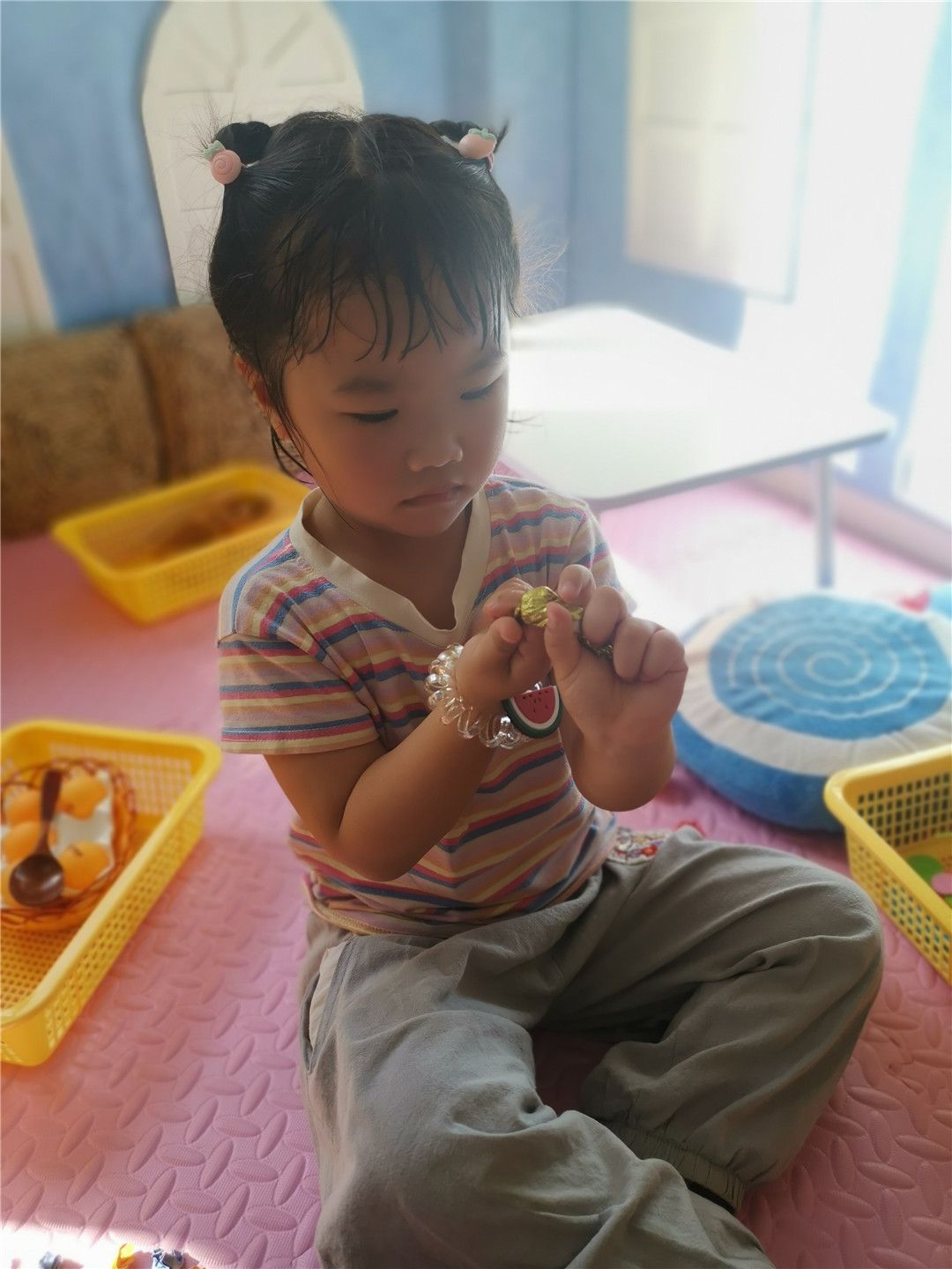 拿上我们可爱的水果手环,找到自己喜欢的区域,开始区域活动啰!