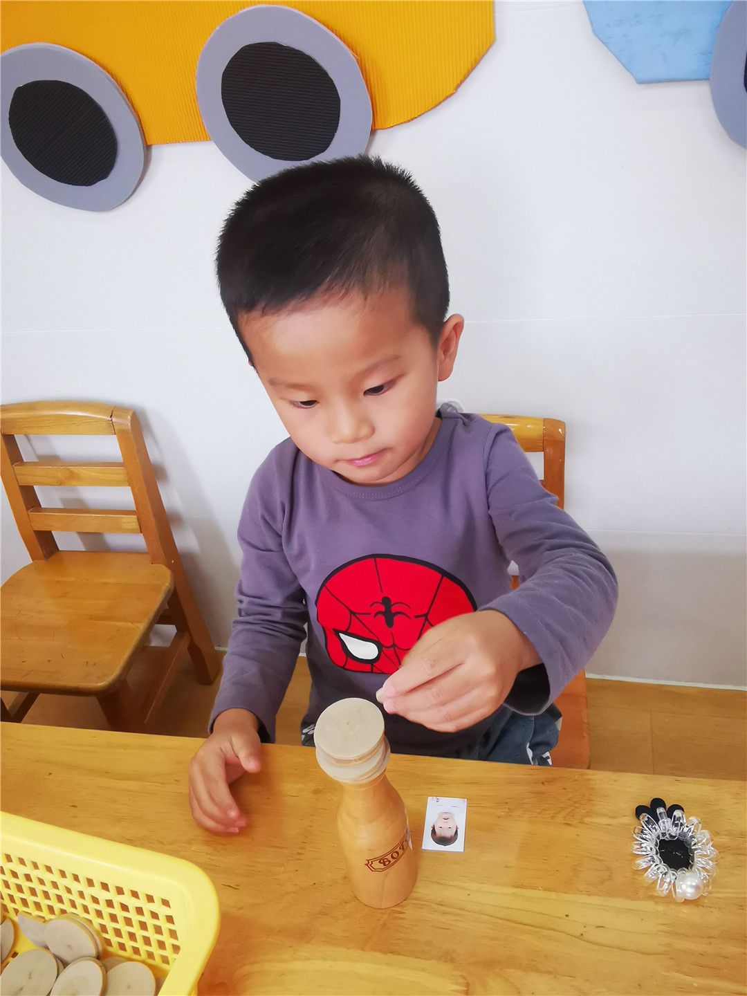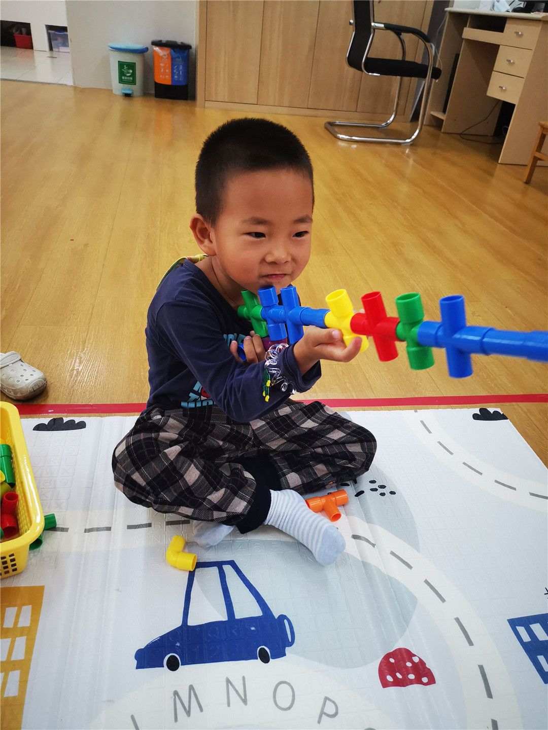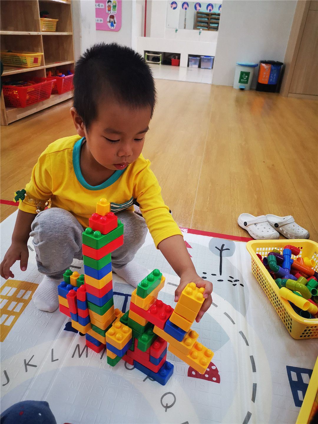 操作区乐趣多,帮小动物找衣服,给小车车找家,帮月亮宝宝保持平衡,给小鱼编一件好看的衣服,彩色积塑拼插,小木瓶叠高高,可真有趣!