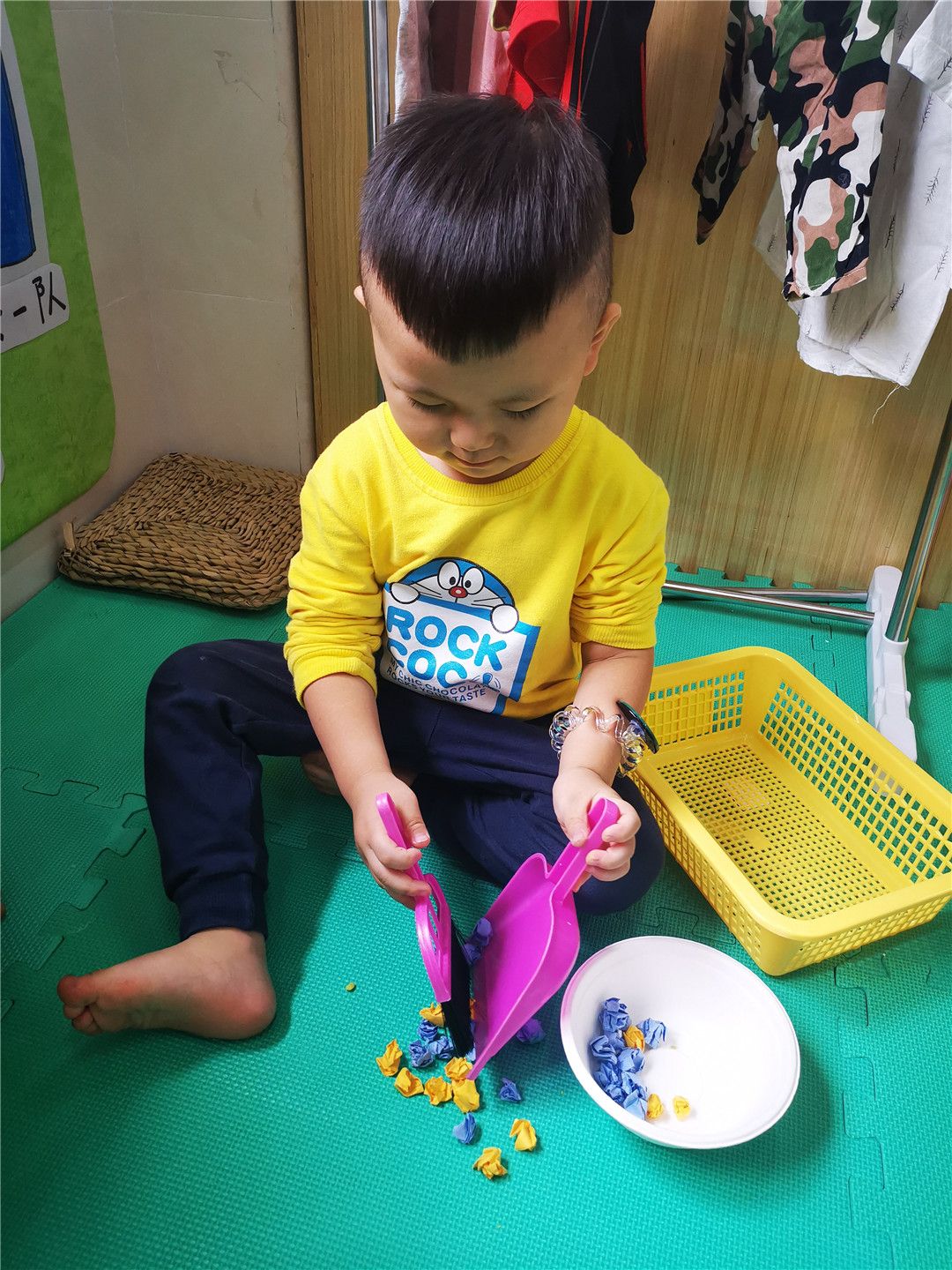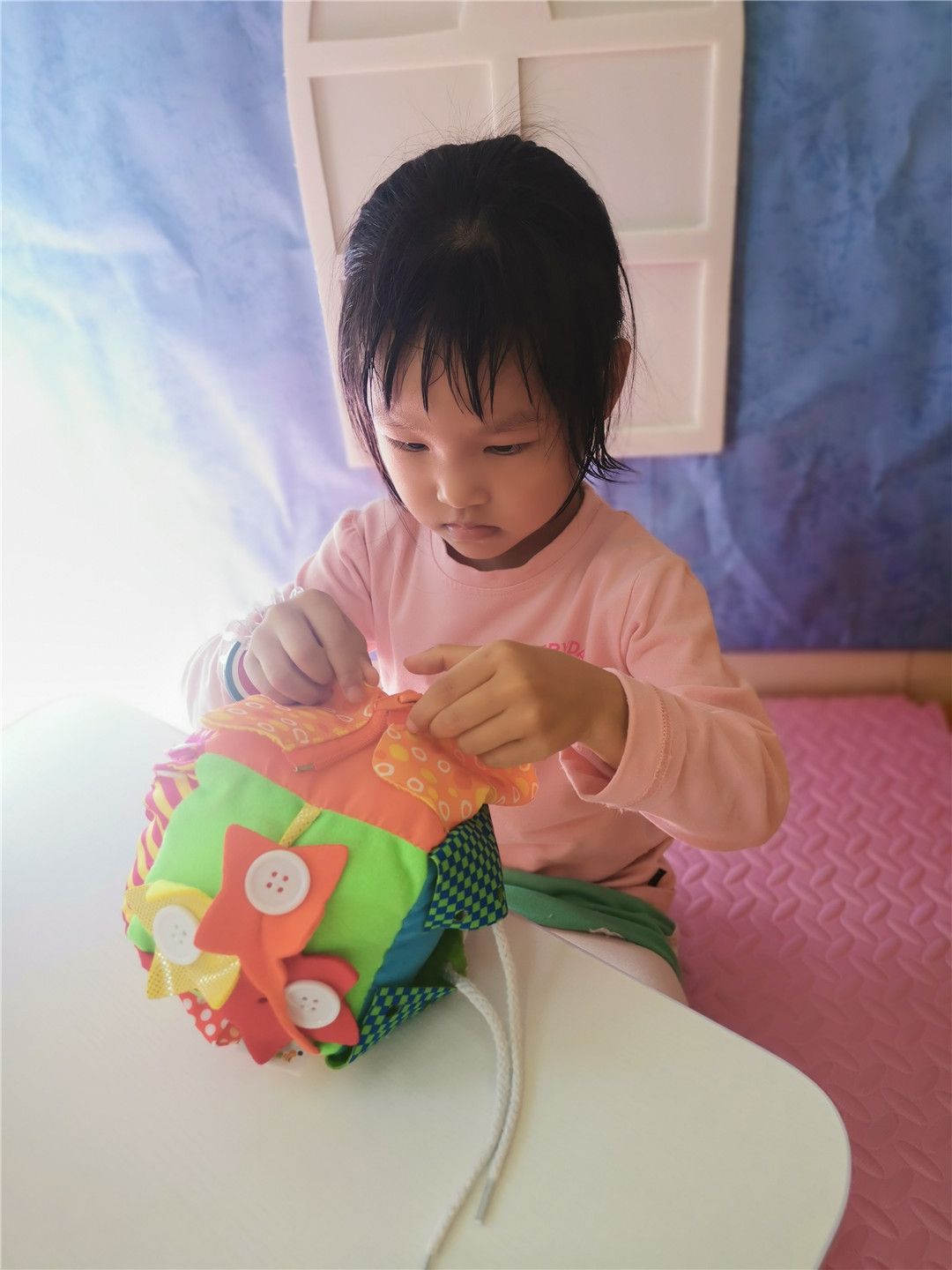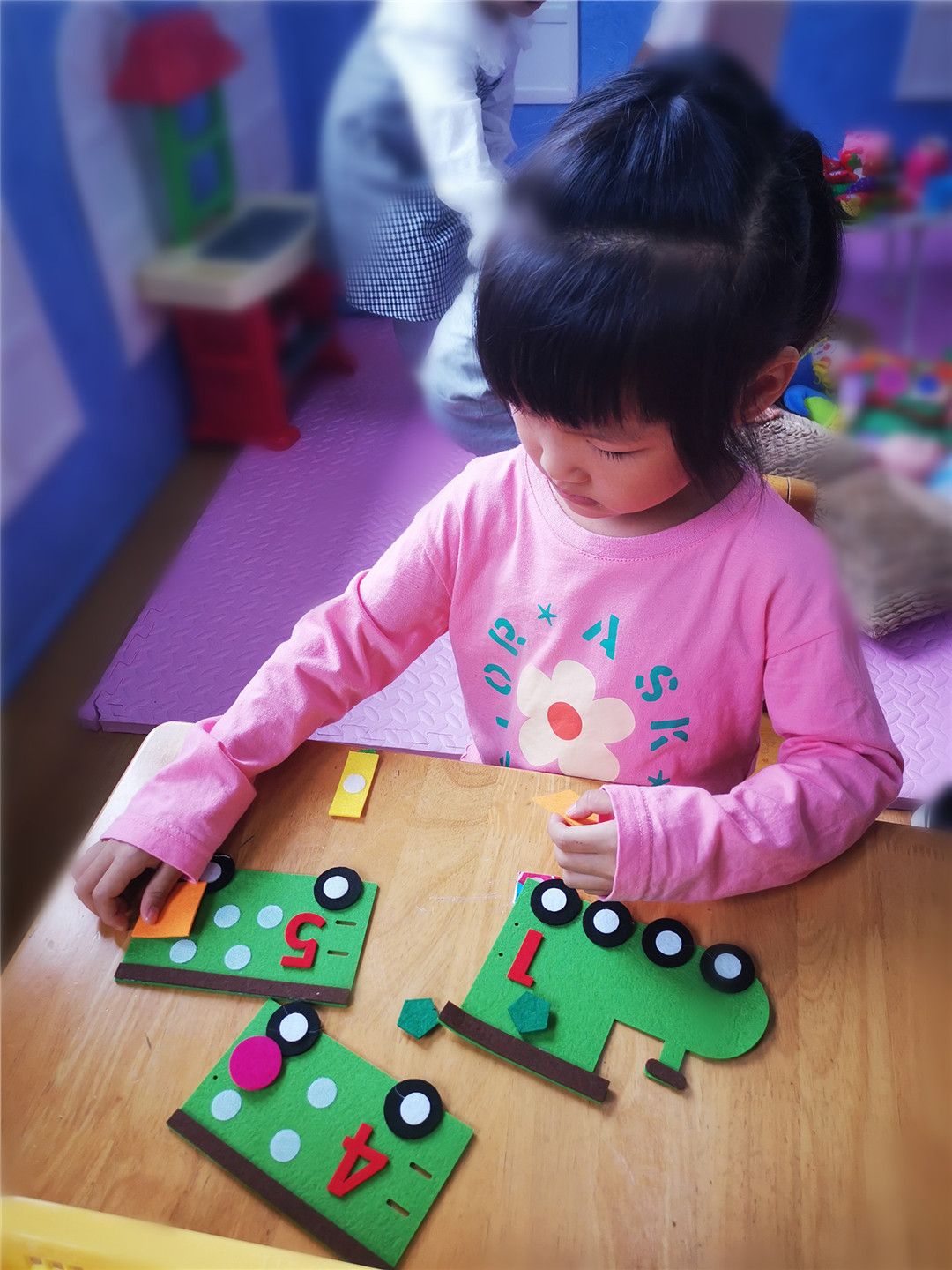 操作区乐趣多,帮小动物找衣服,给小车车找家,帮月亮宝宝保持平衡,给小鱼编一件好看的衣服,彩色积塑拼插,小木瓶叠高高,可真有趣!