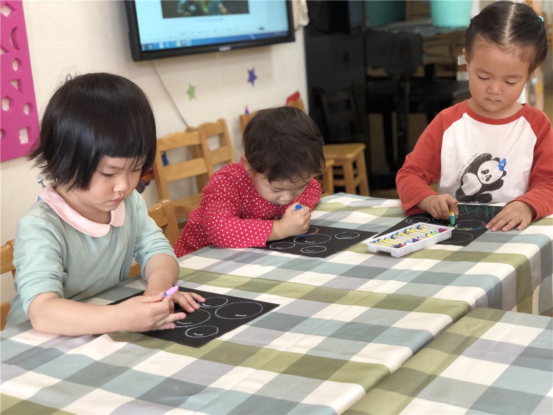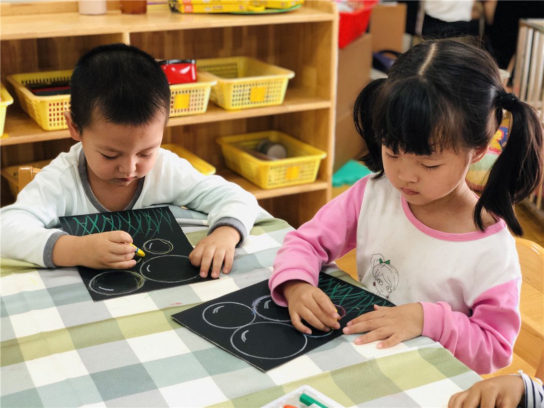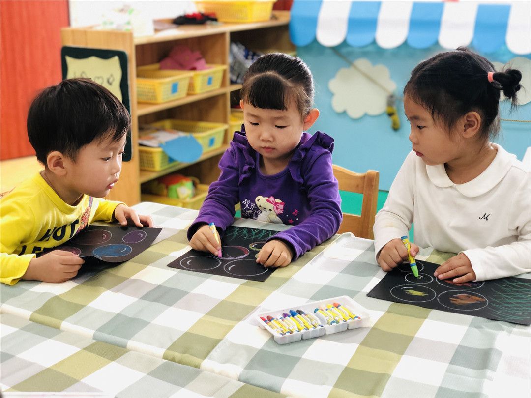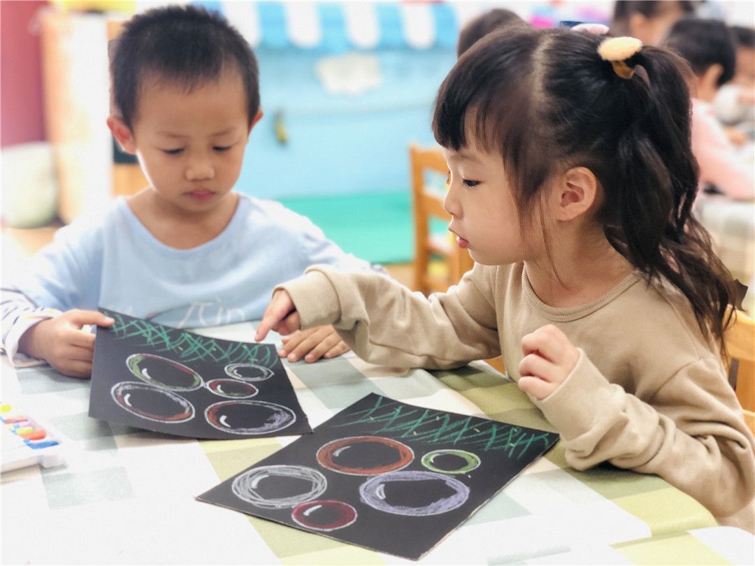 在我们的画笔下,泡泡是五颜六色的,有各种各样我们喜欢的颜色。