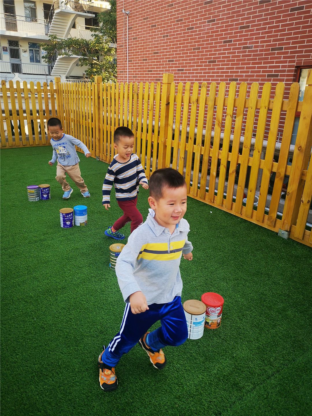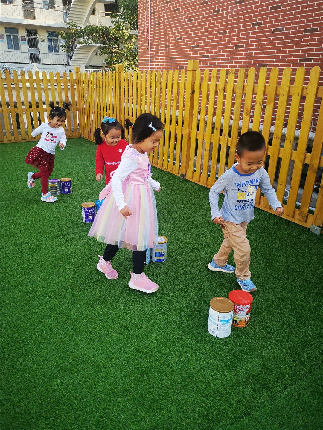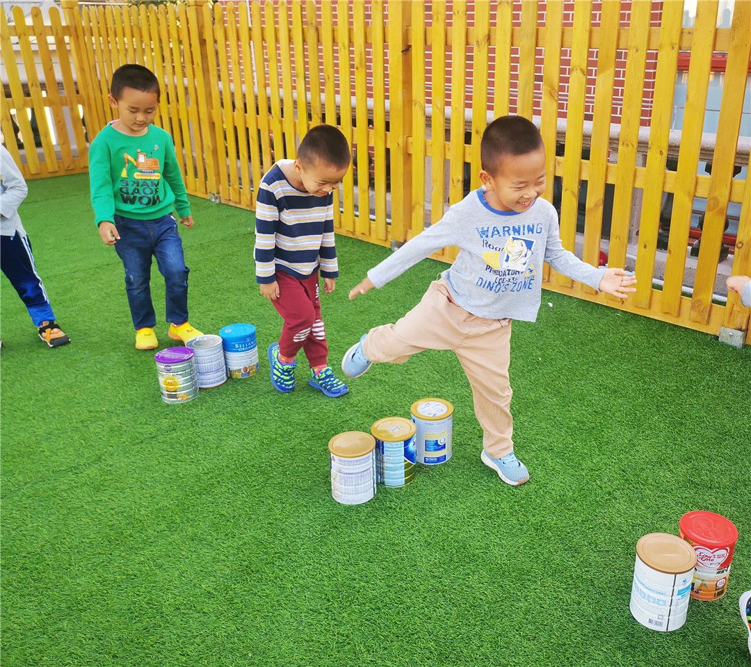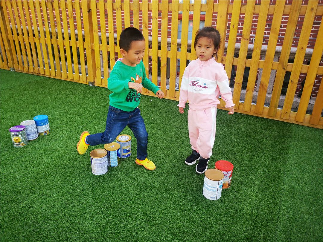 奶粉罐大作战,绕着、跨一跨、踢一踢。