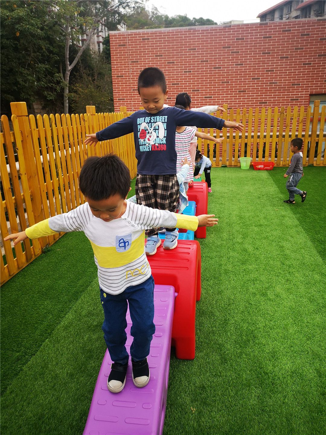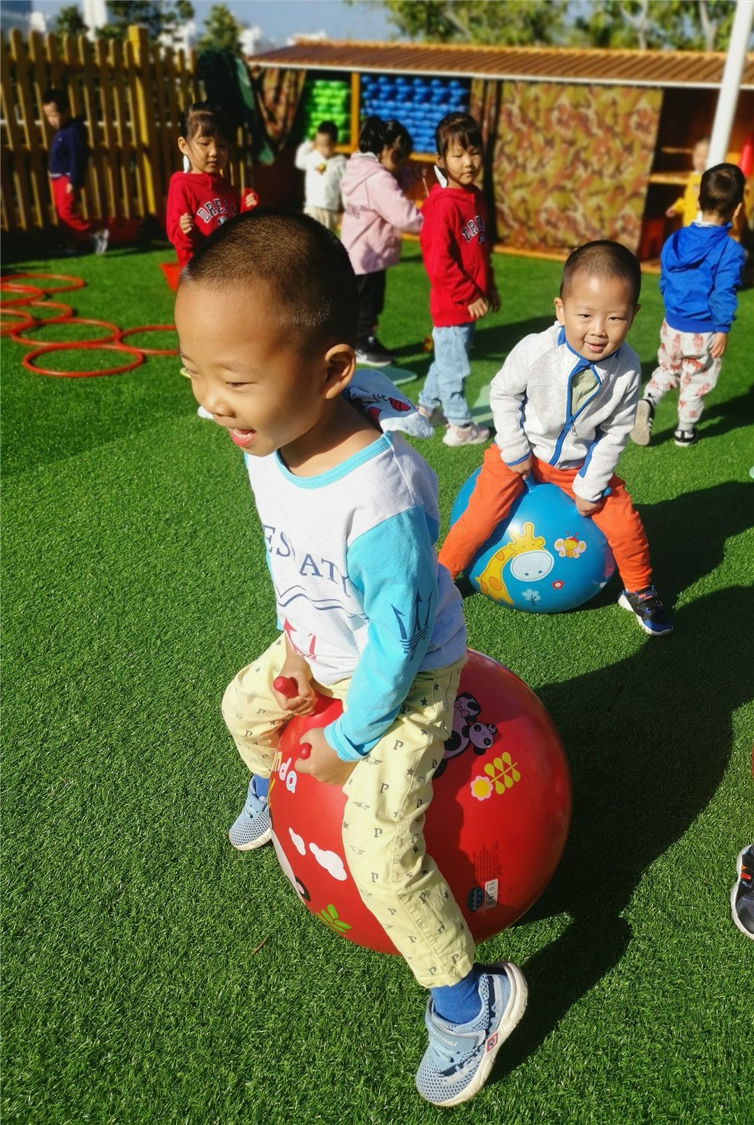 丰富多彩的户外活动是宝贝们健康成长的源泉。宝贝们在快乐、自由的户外活动中促进大肌肉的动作协调性以及灵活性,促进了同伴间的友谊,自由快乐地茁壮成长!