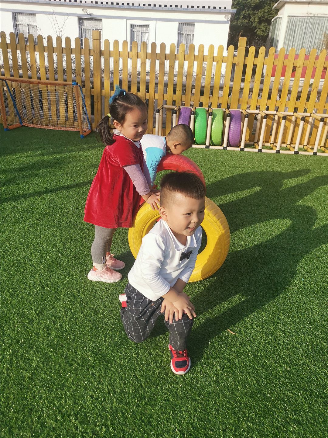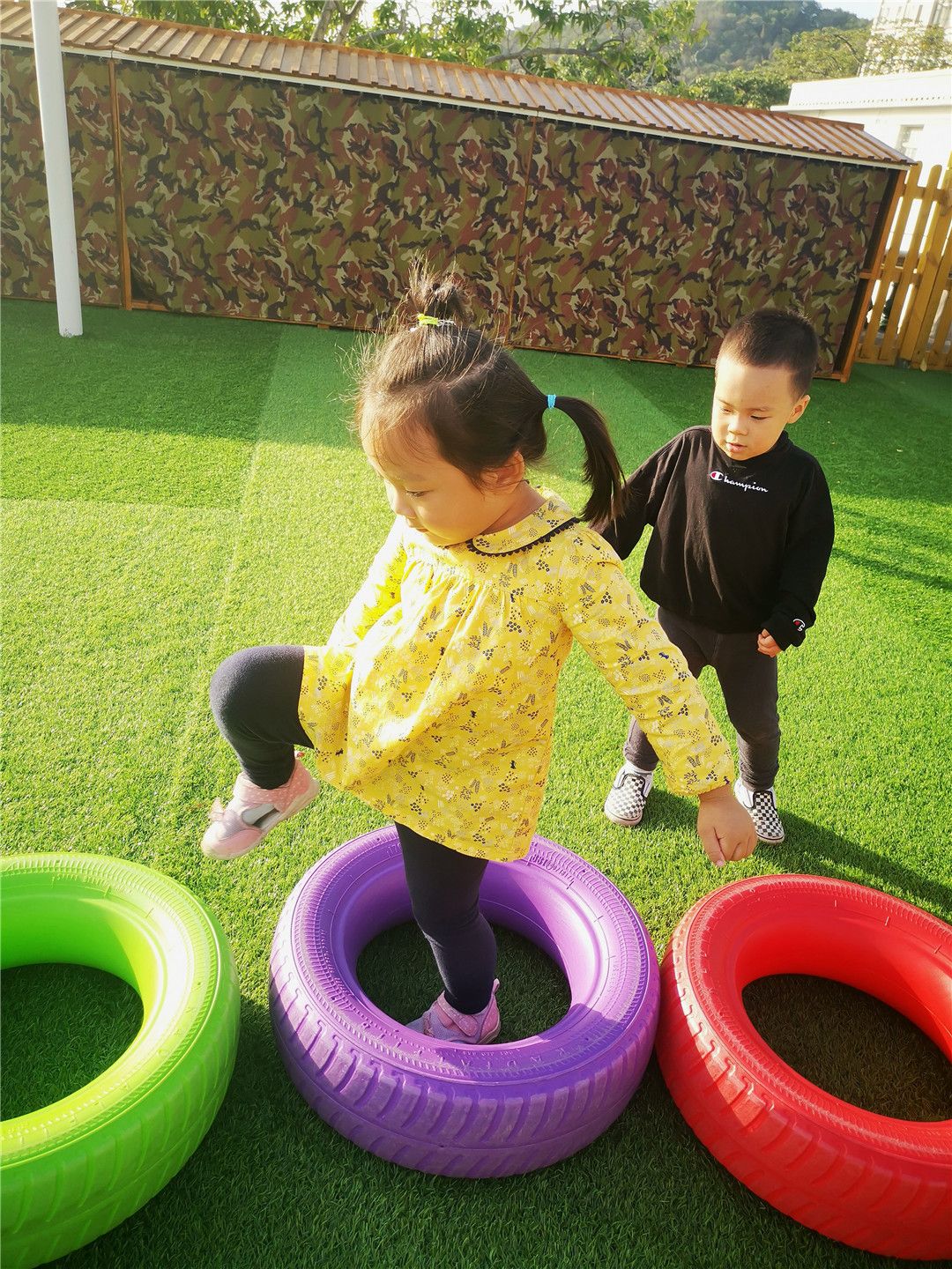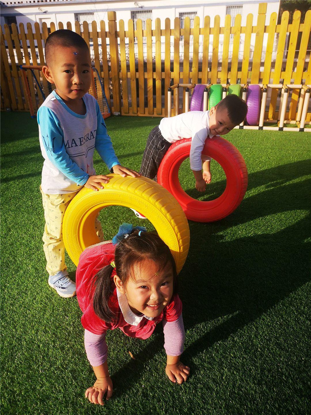 看,我还能钻过轮胎“山洞”!