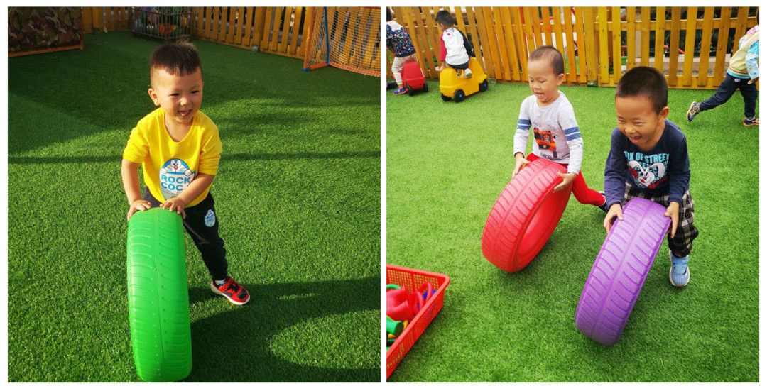 哇,五颜六色的轮胎,我们一起来推一推,滚一滚。