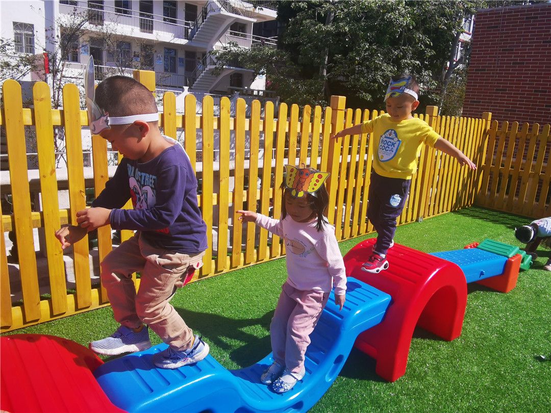 独木桥,独木桥,走一步,摇一摇,勇敢宝宝不害怕,大摇大摆过了桥,我们最喜欢玩独木桥啦。
