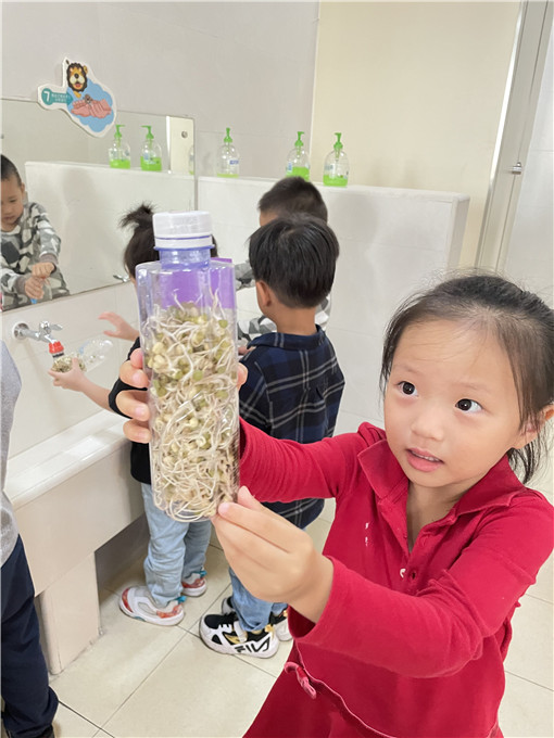 从泡下豆芽那天开始,小四班的宝贝们每天到教室的第一件事就是去看看小小豆芽长得怎么样啦!是不是又长长啦?宝贝们可是每天充满都很期待呢!