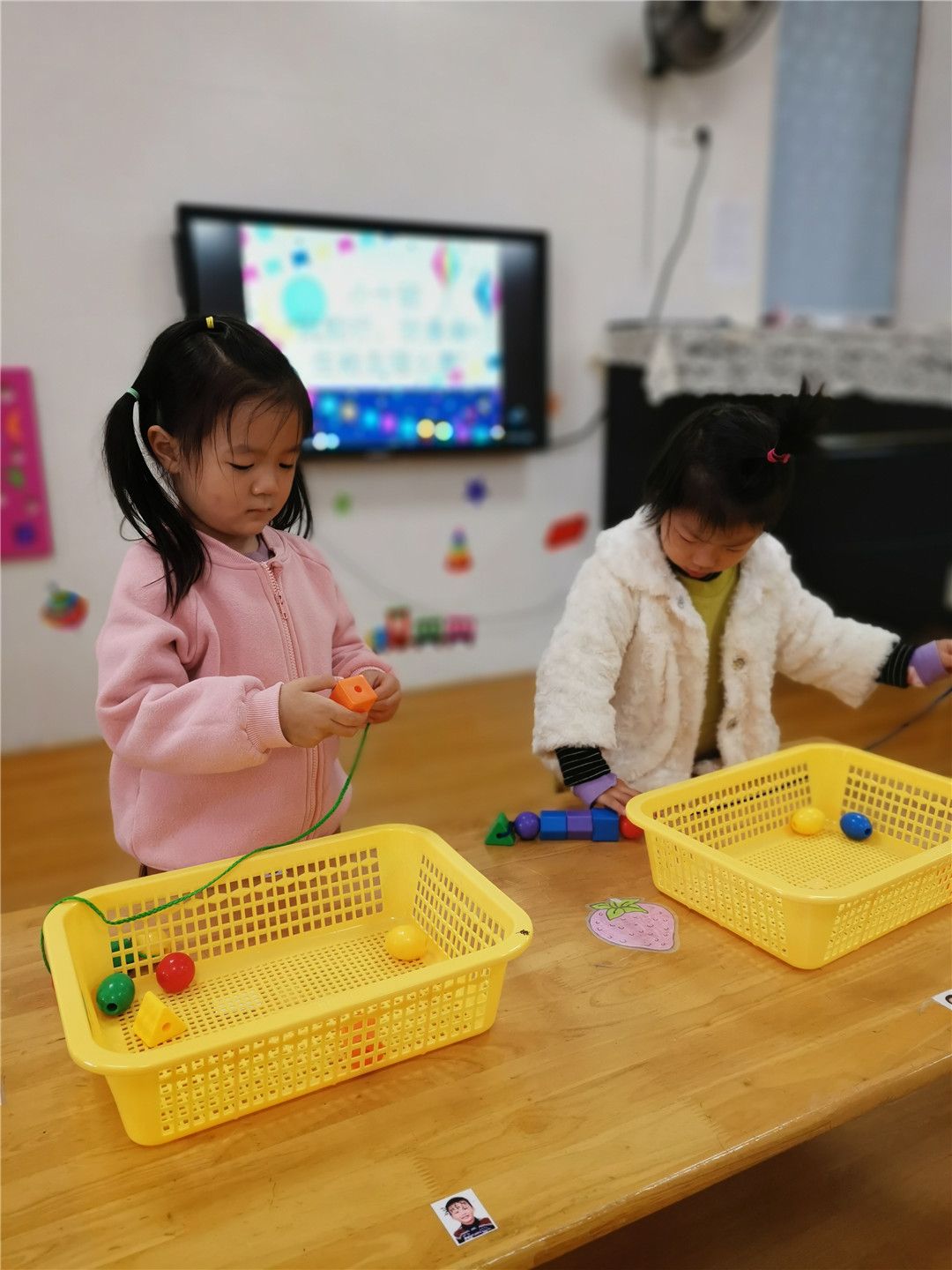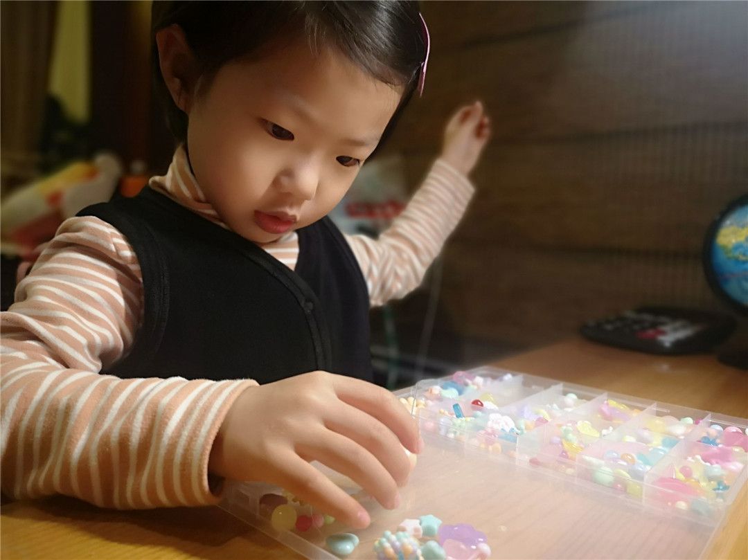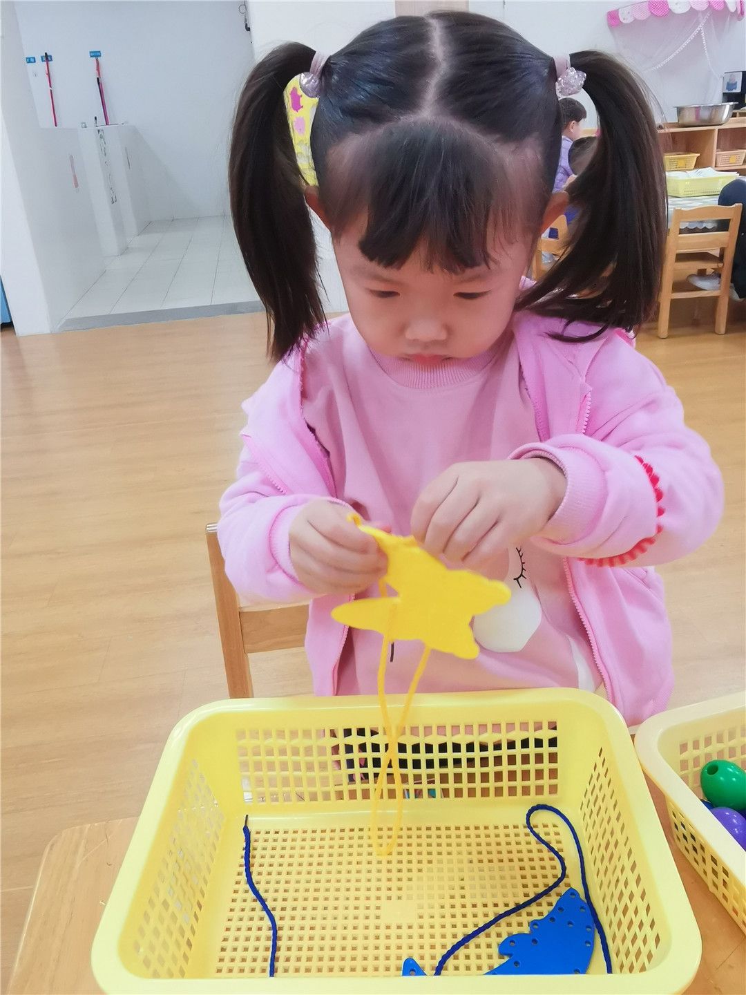 班级的操作区里也有不少好玩的串珠穿线呢!