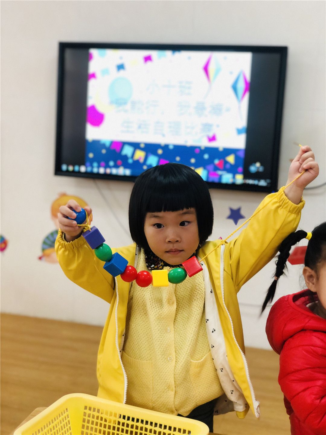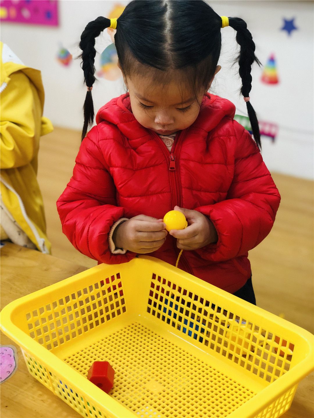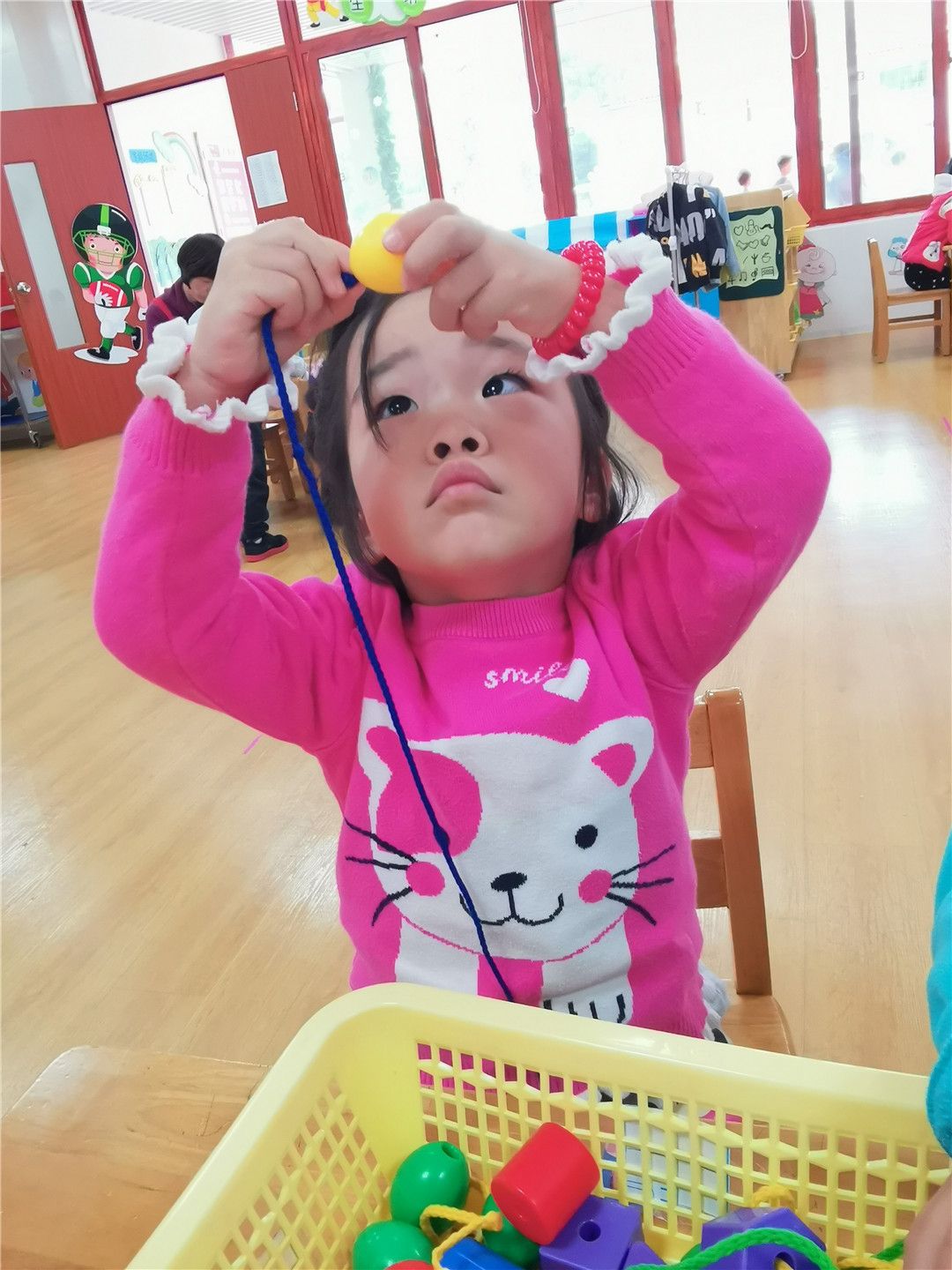 班级的操作区里也有不少好玩的串珠穿线呢!
