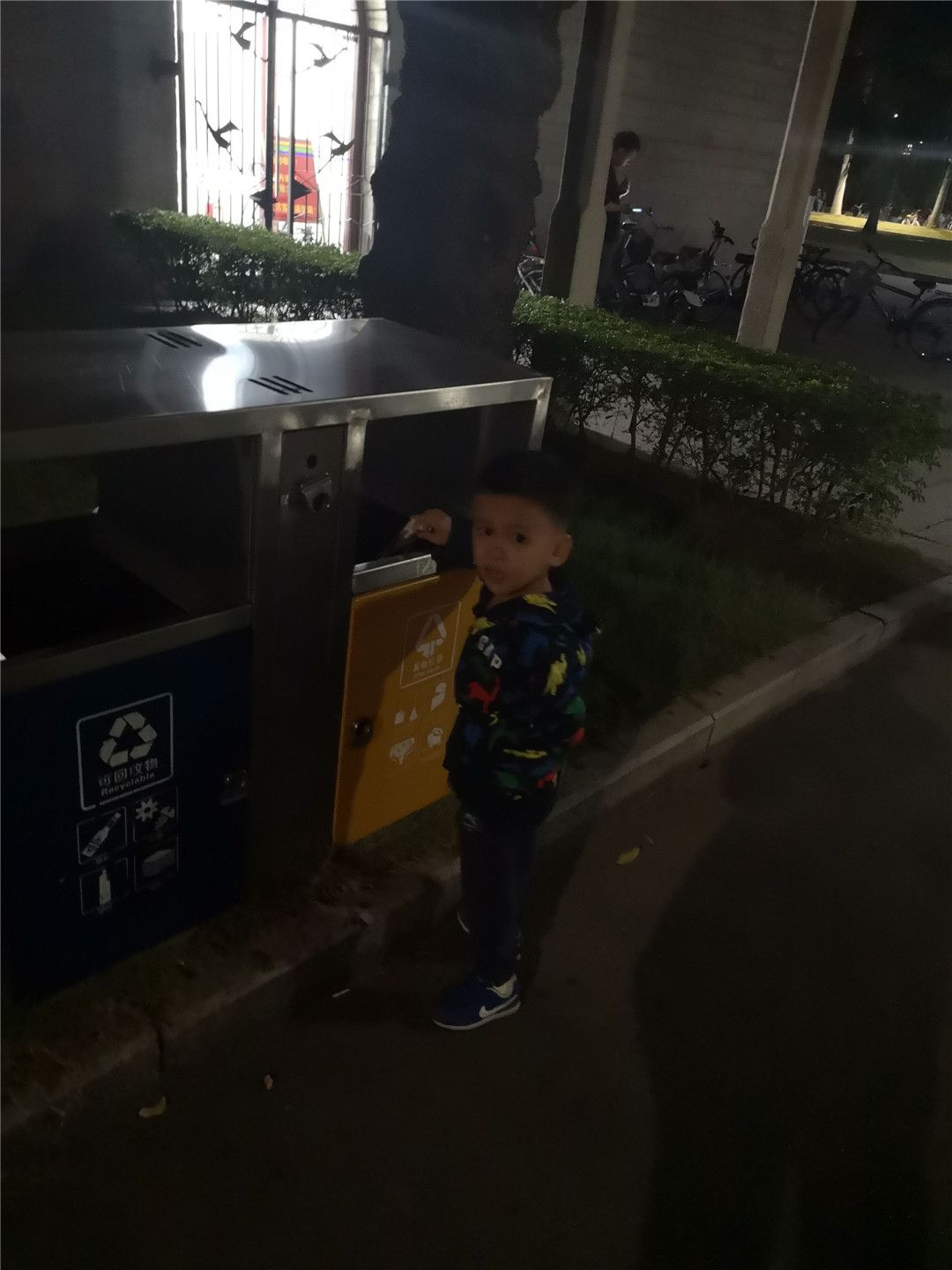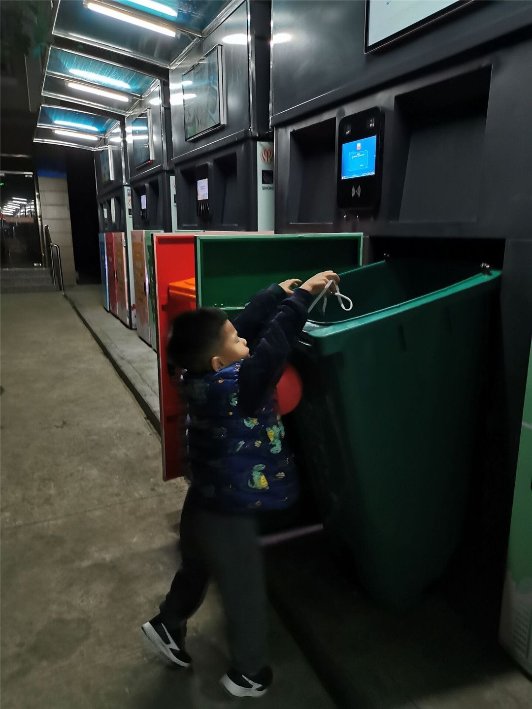 “哎!不对不对,用过的纸巾要丢进其他垃圾这里。”