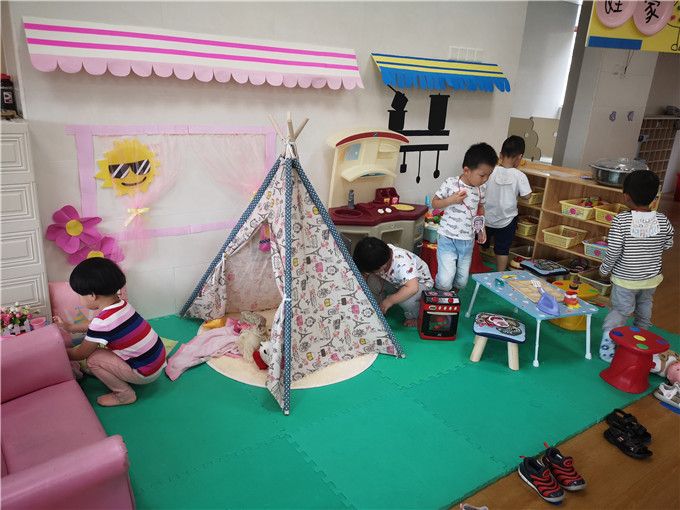 区域游戏开始啦!在娃娃家里,我们可以扮演爸爸妈妈,学煮饭、学炒菜、学整理,我们还学会了照顾宝宝。阅读区里,我们可以随意选择我们自己喜欢的绘本自主阅读,还学会了遵守游戏规则。