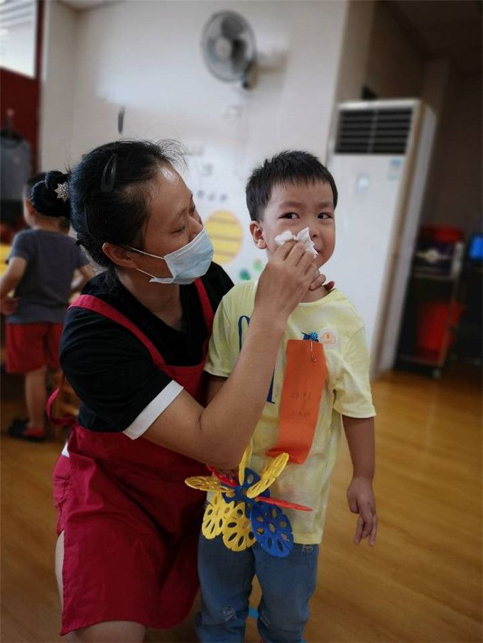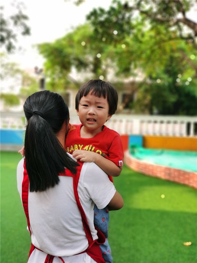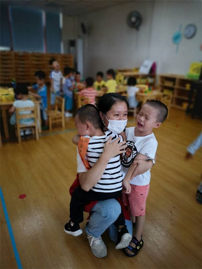 教室里哭声、找妈妈、找爸爸、给妈妈打电话声此起彼伏,萌娃们婆娑的泪眼,哭红的小脸儿,一幅幅小可怜样让老师们心疼不已。