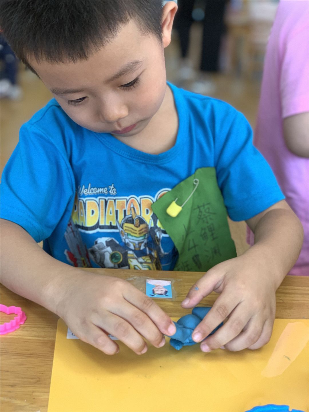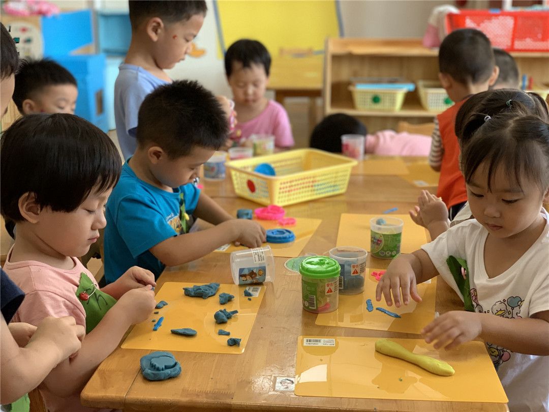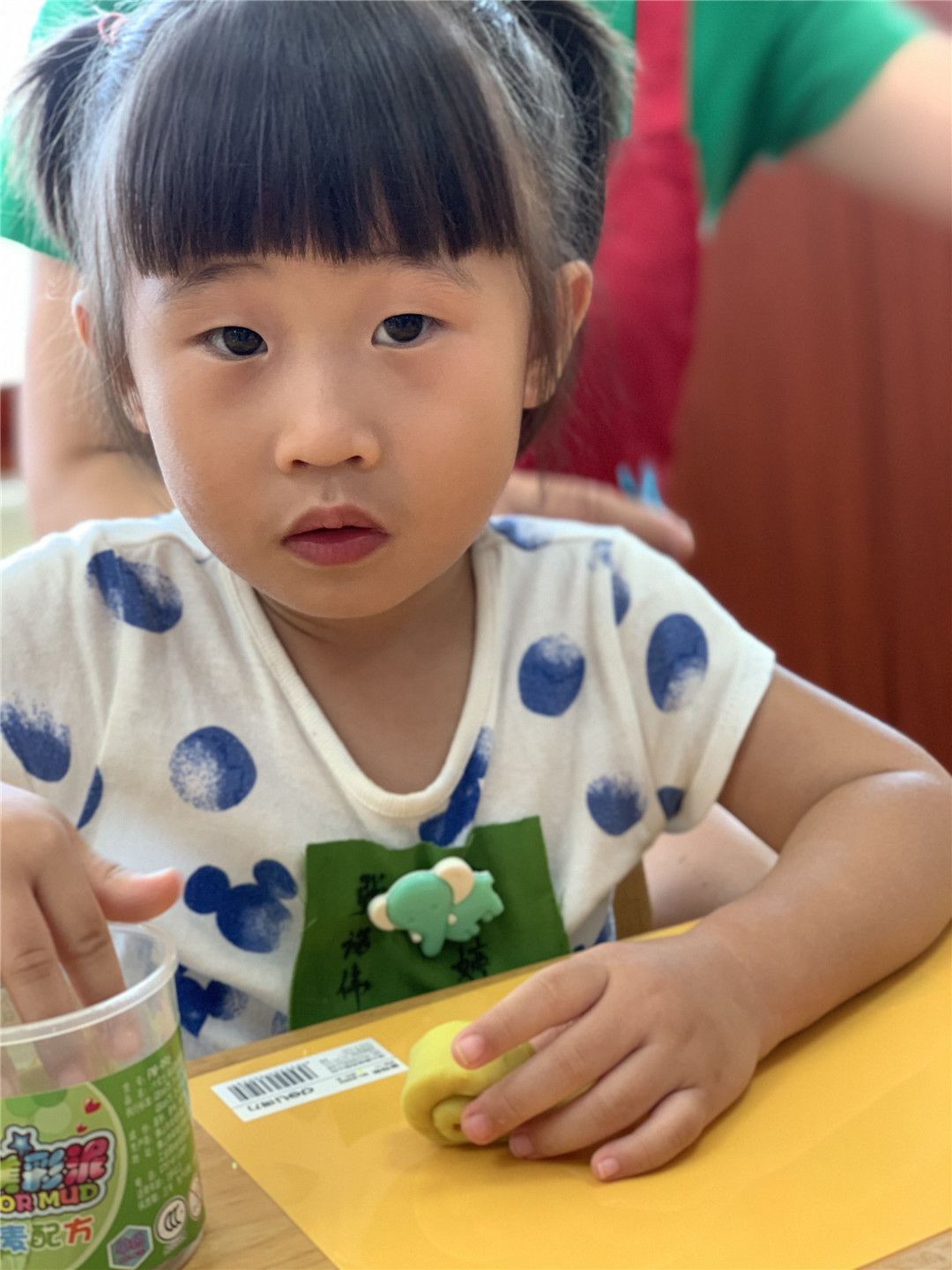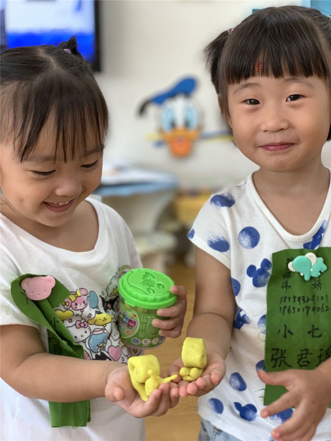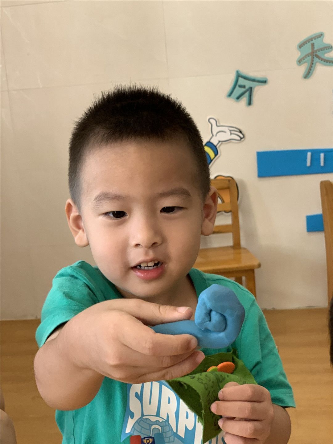 “你瞧,我用橡皮泥做蜗牛,可爱吧?”