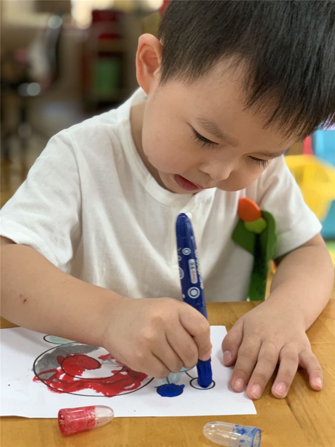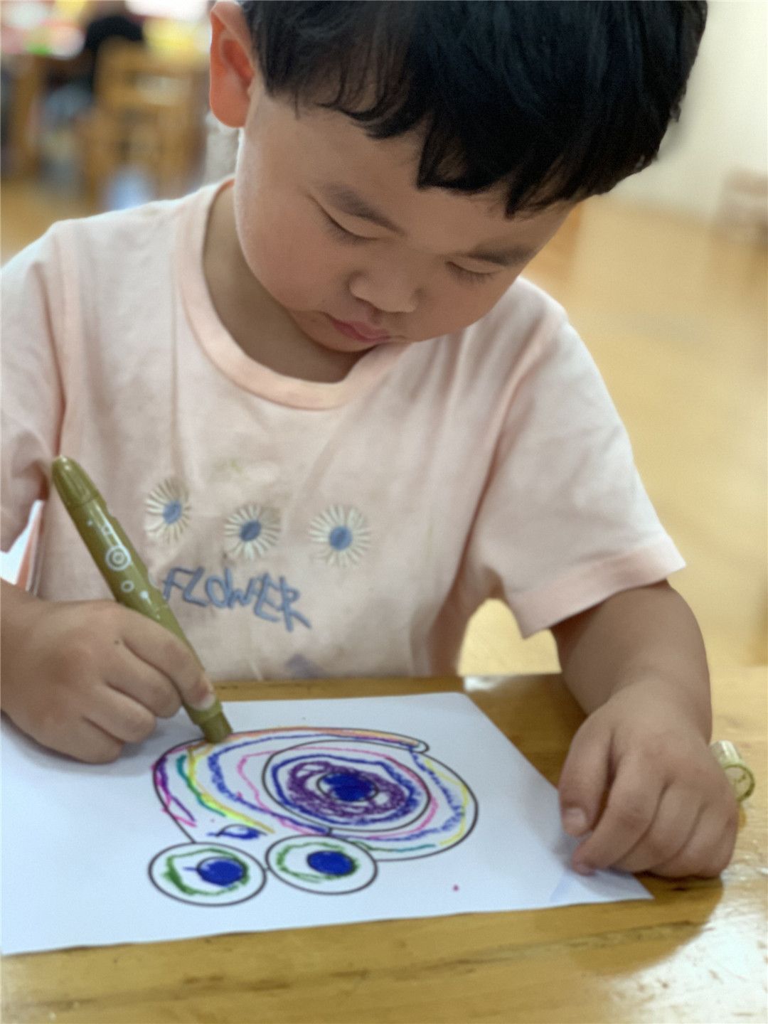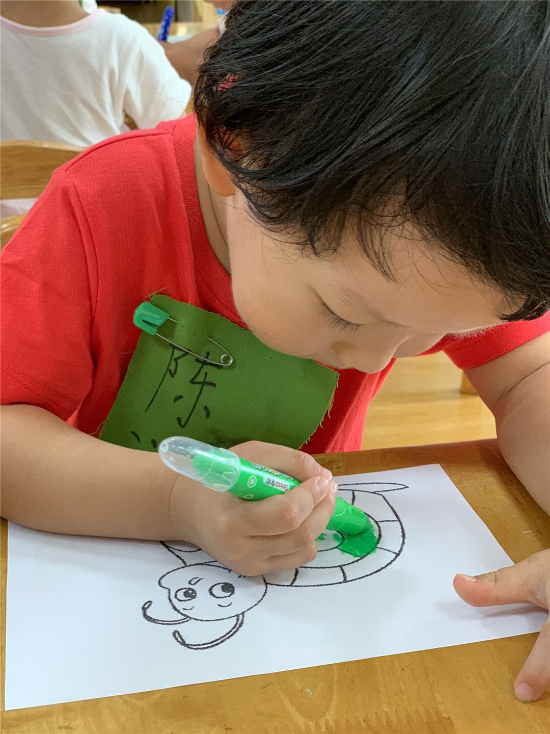 “小蜗牛的样子好可爱,我们一起用彩笔给蜗牛穿上漂亮的衣服吧!”