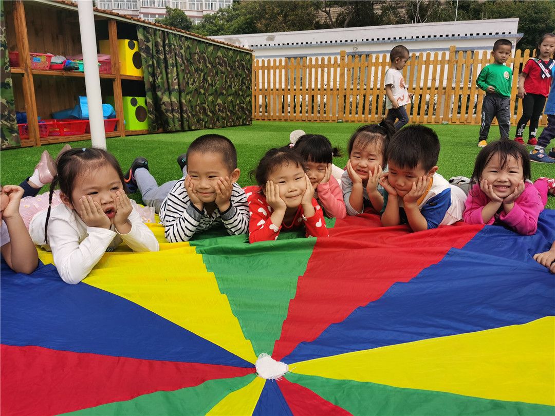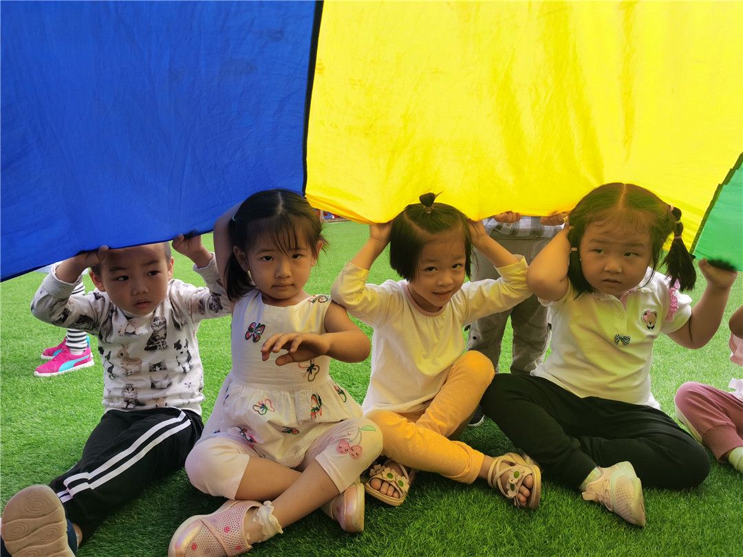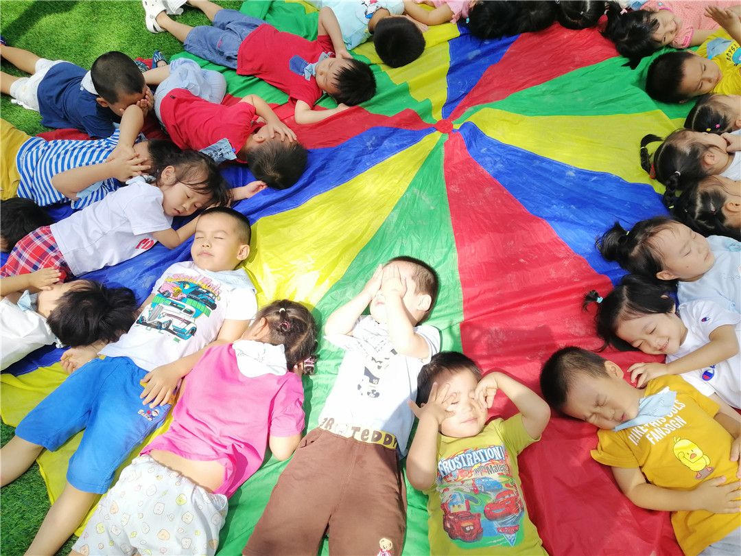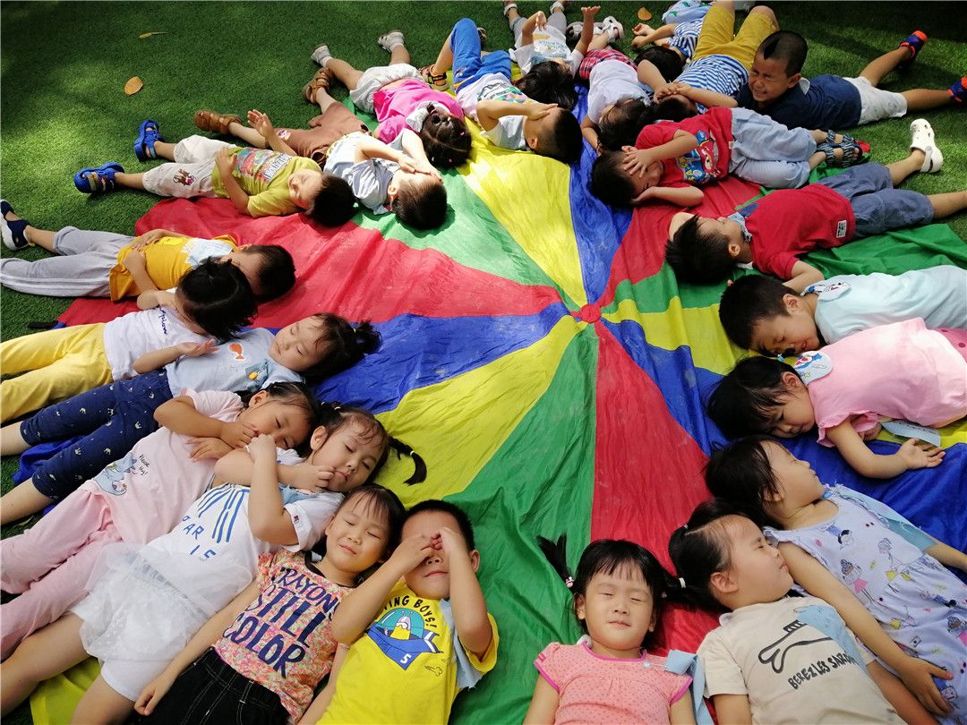 玩累了,彩虹伞上歇一歇,晒晒背,沐浴在阳光下,这是操场上最美的风景线。