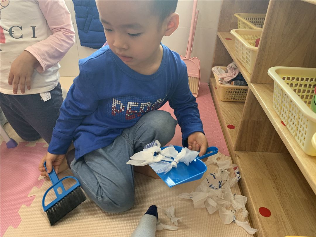 这地上怎么这么多垃圾,让能干的我来打扫干净吧!
