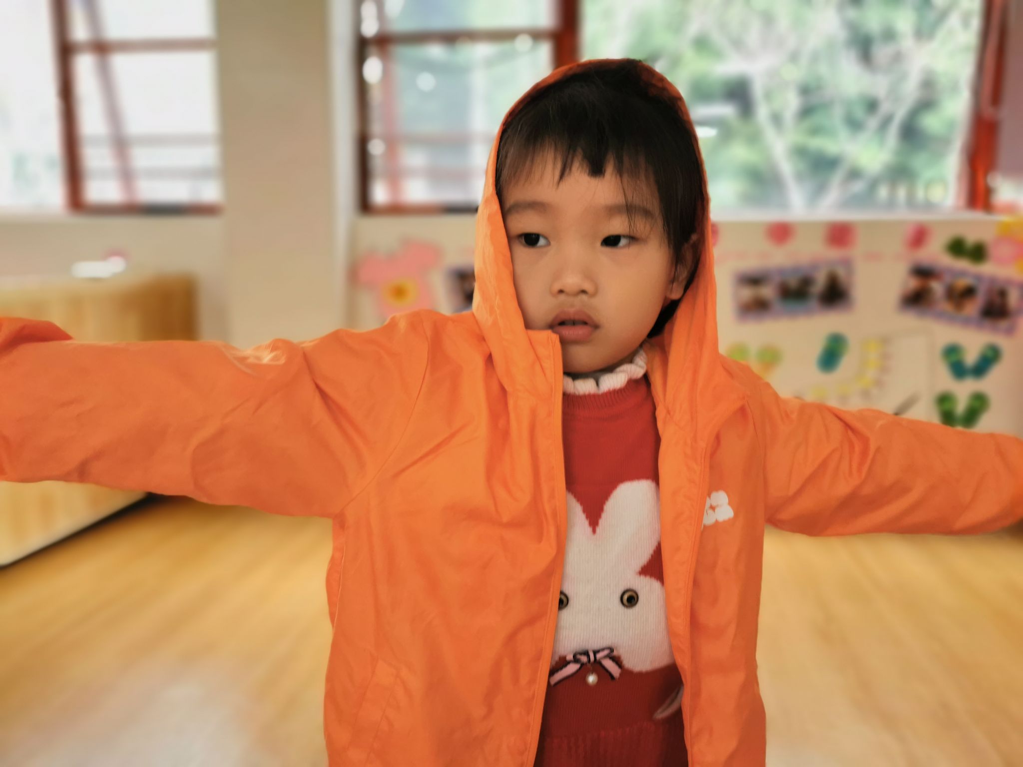 “耶,我穿好了。”