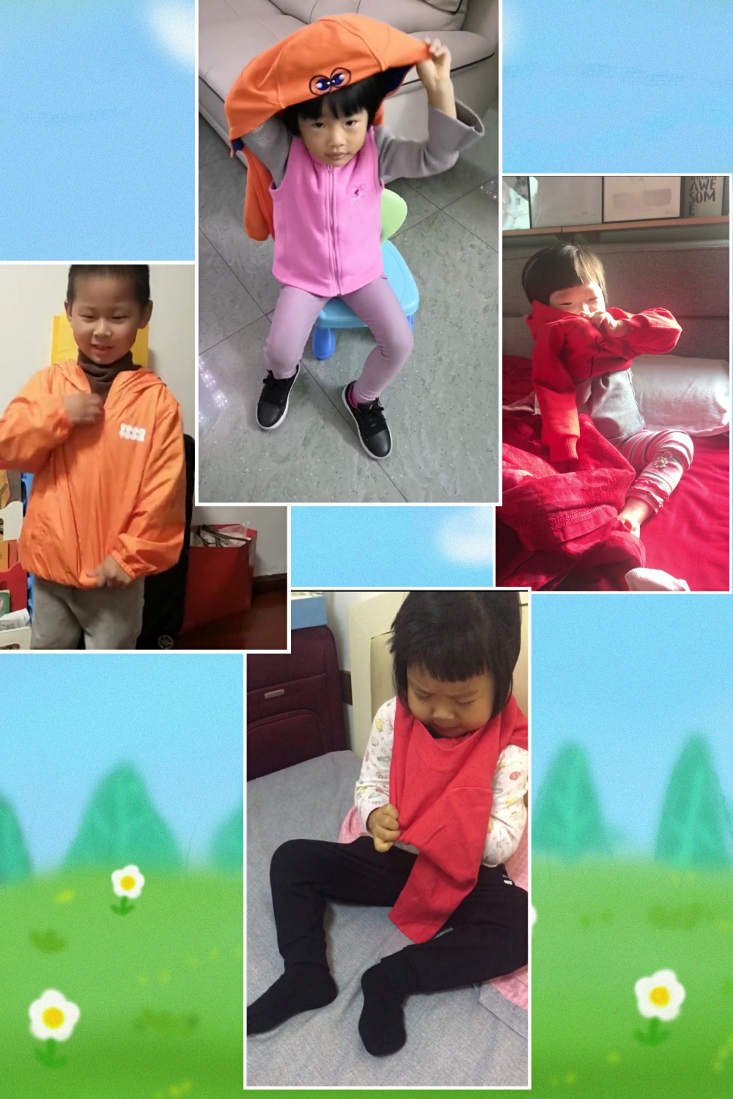 “我妈妈说穿衣服的时候要把里面的衣服袖子抓住!”