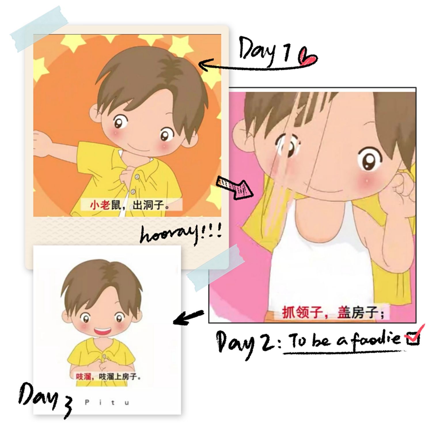 《脱衣歌》:缩缩头,拉出你的乌龟壳,缩缩手,拉出你的小袖口。