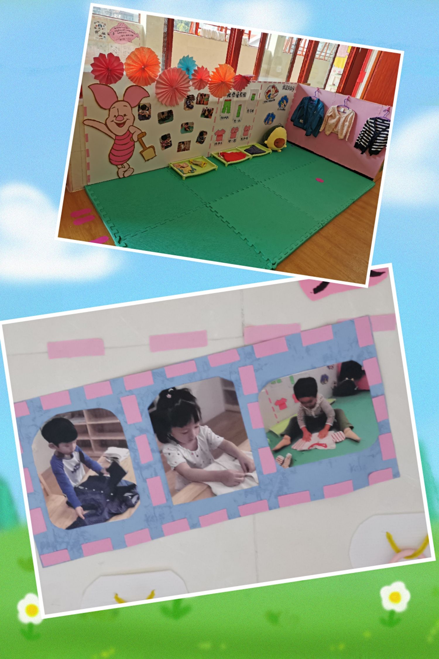 “老师,我以后也要自己动手穿衣服了”。