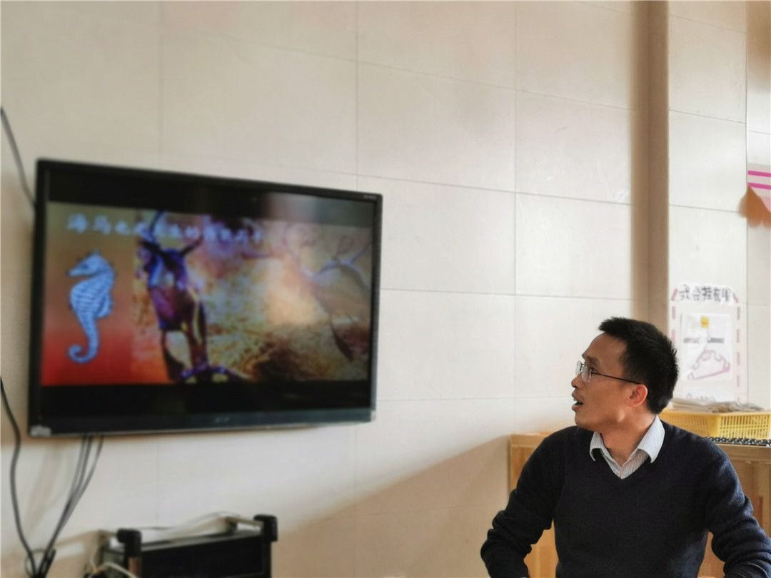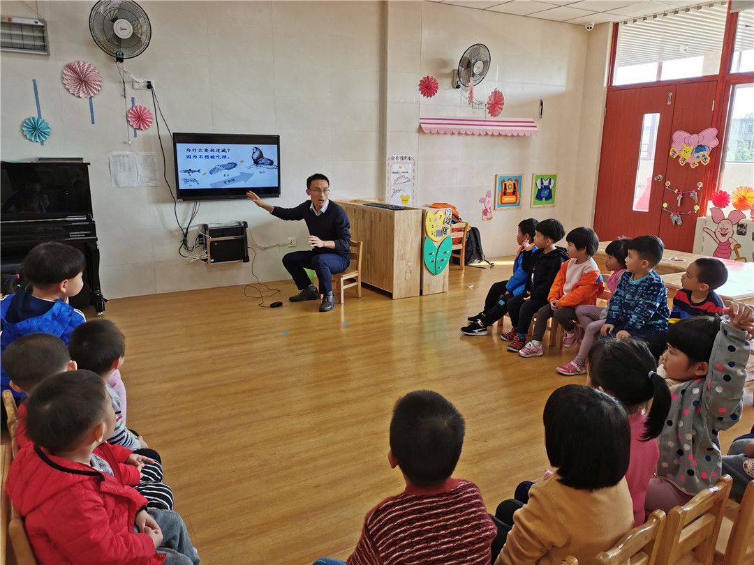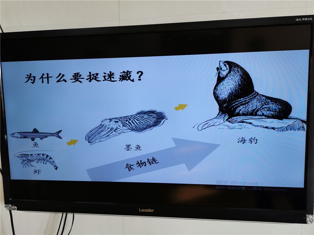 “大海里的小动物们你吃我,我吃它,大鱼吃小鱼,小鱼吃小虾……,它们不想被吃掉就会玩捉迷藏游戏,想办法把自己藏起来,不被敌人发现。”非非爸爸以一段海洋动物食物链的视频和一些有趣的动图为宝贝们揭开了谜团。