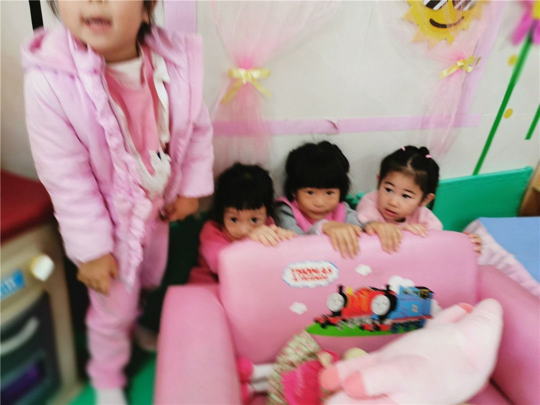 “这粉色粉色沙发跟我衣服一样,我藏在这里。”