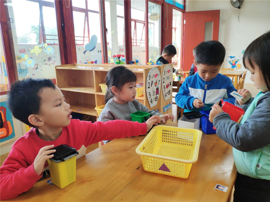 在丫丫生活坊,老师们投放了的“垃圾分类”区域材料一下子吸引了福娃们的注意,成为区域活动的“网红玩具”呢!