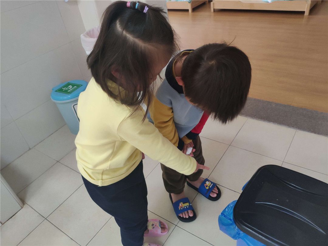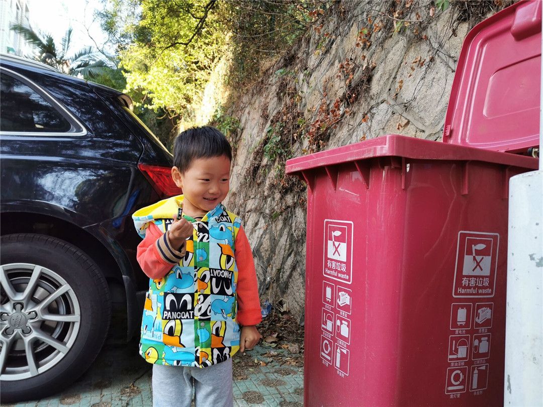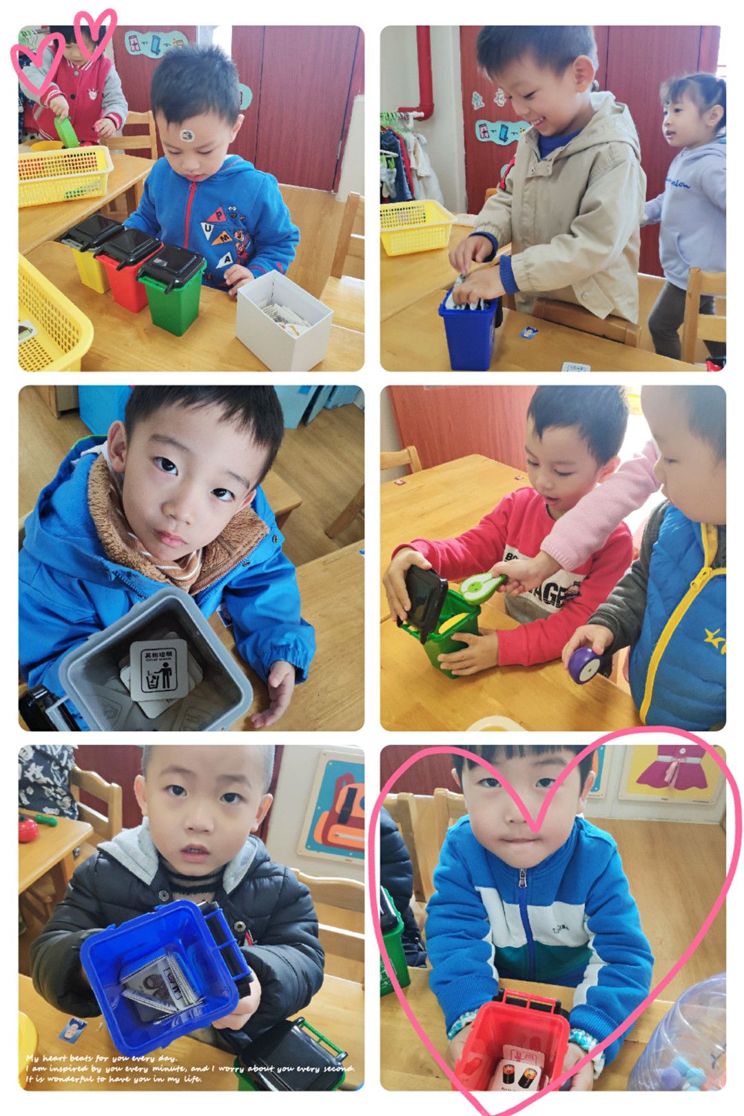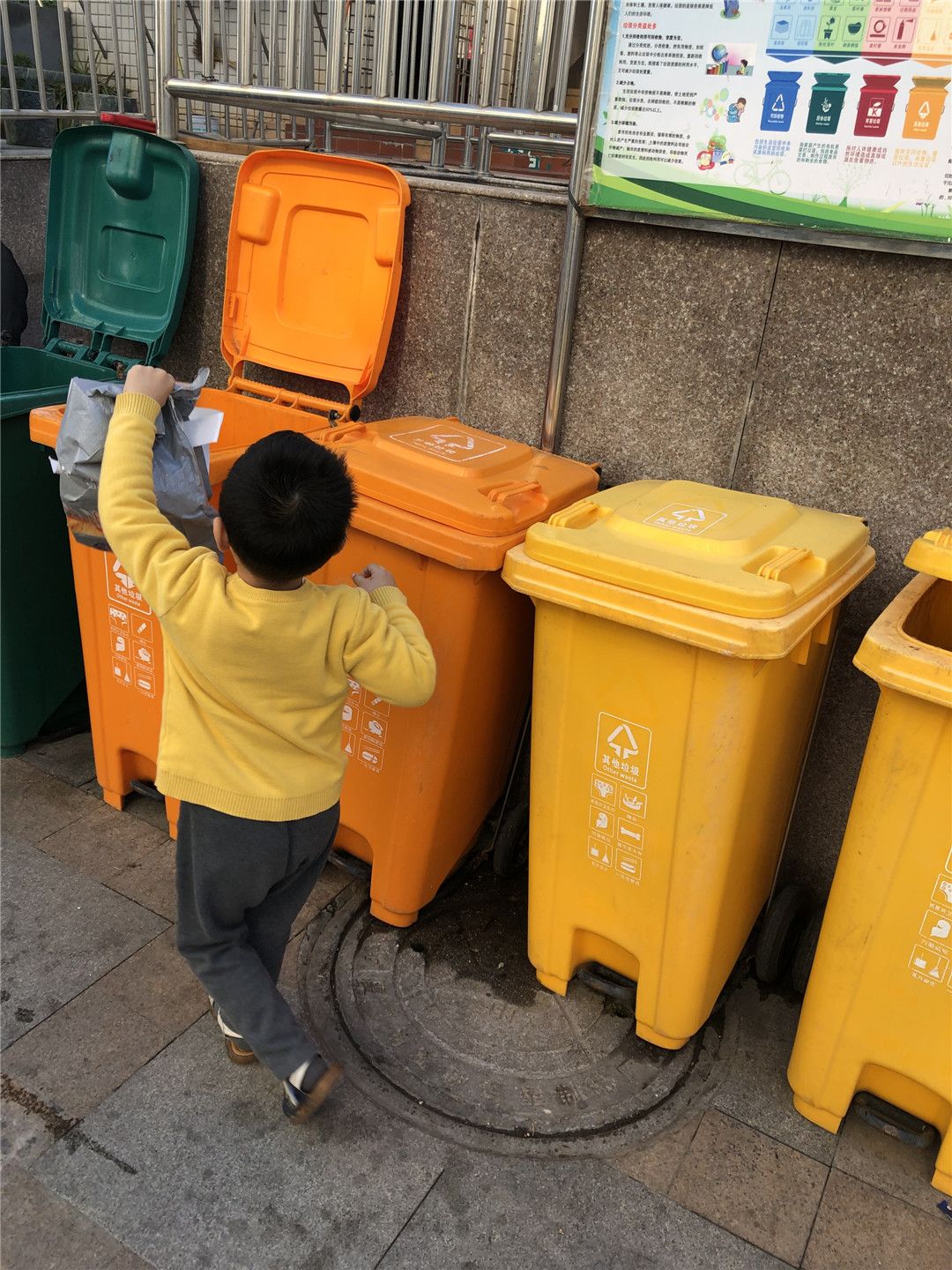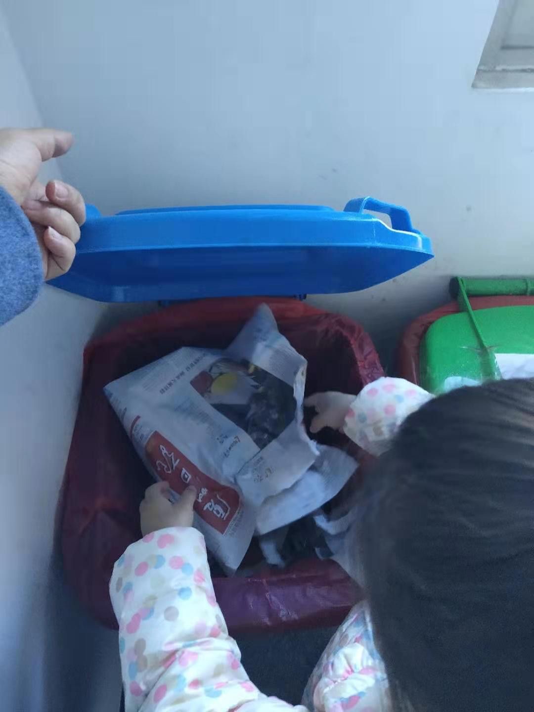 今天包仔发现了垃圾桶里有一堆的纸巾,便和旁边的Holly讨论了起来:“为什么纸巾要扔在黄色的垃圾桶呀?”因为它脏了。“那为什么有不同颜色的垃圾桶呢?”“我也不知道呢。”刘老师听到后笑而不答,说:“要不,晚上你们自己去找答案吧。”