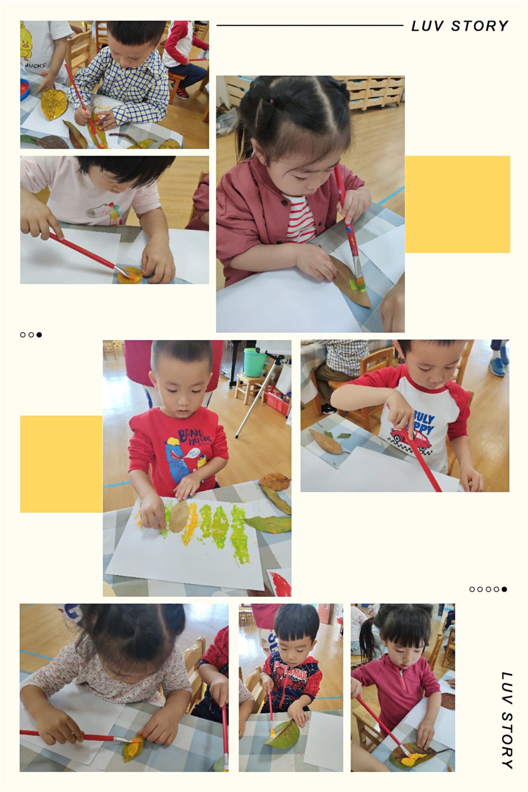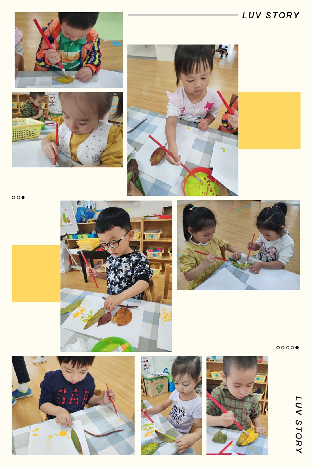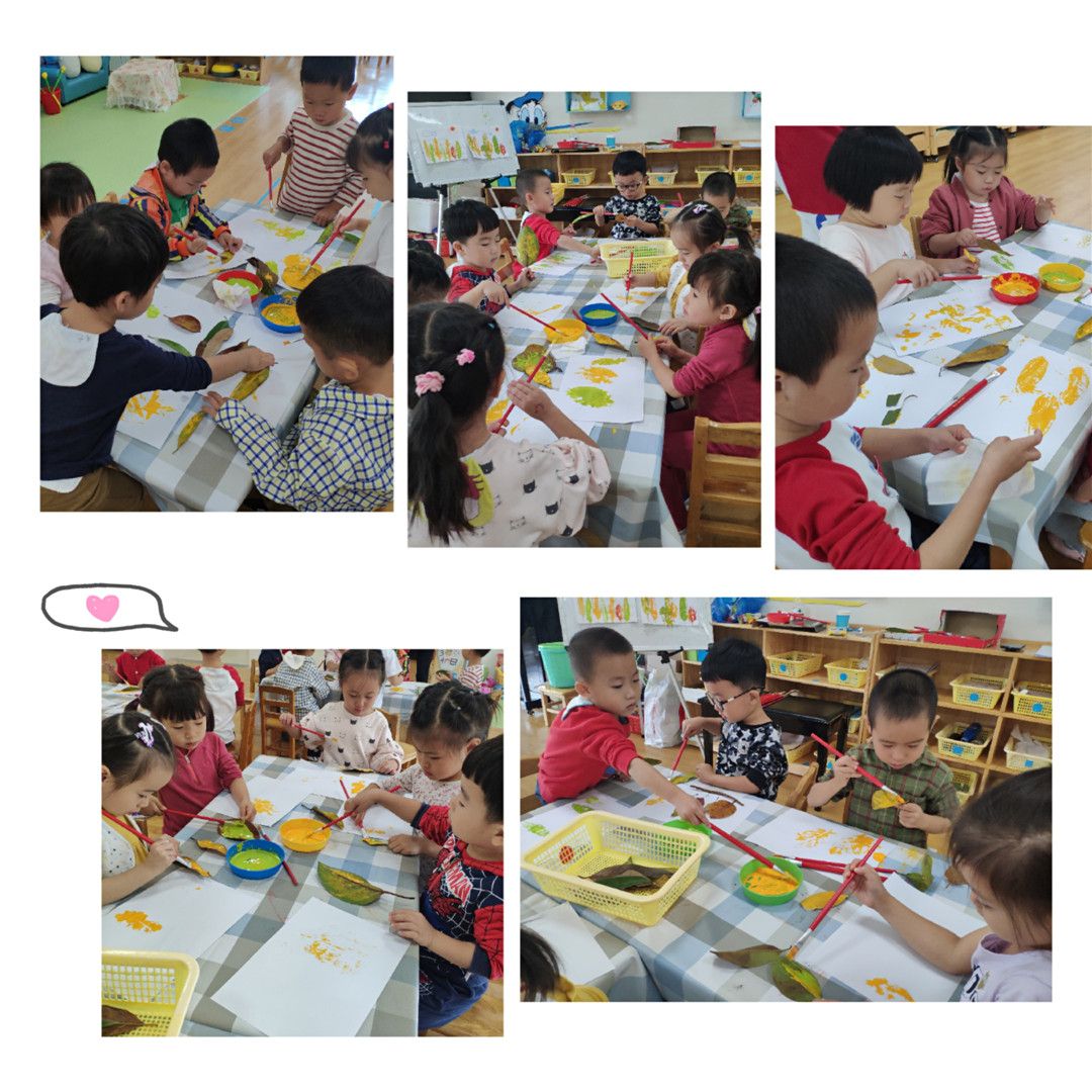 秋意盎然的十一月,福娃们发现了秋叶并用颜料和笔帮秋叶穿上漂亮的衣服,印下了美丽的金秋图。我们相信通过此次与秋叶的亲密接触,能让福娃们开阔眼界、增长知识,激发对大自然的喜爱之情。期待福娃们更多的探索与发现!