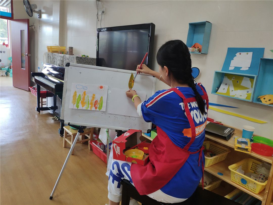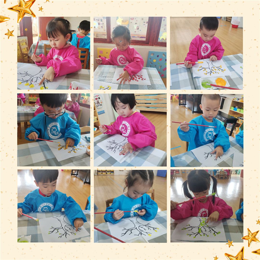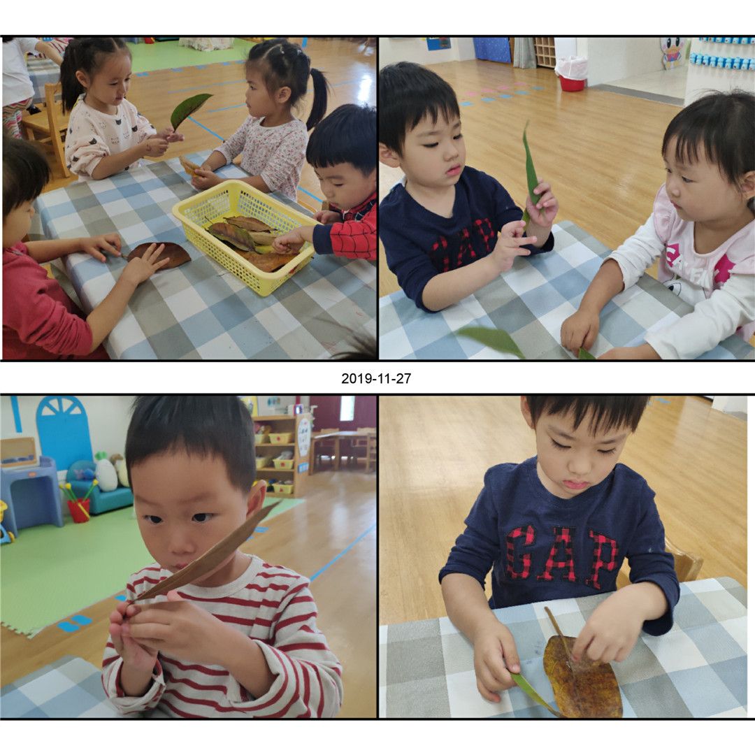 秋意盎然的十一月,福娃们发现了秋叶并用颜料和笔帮秋叶穿上漂亮的衣服,印下了美丽的金秋图。我们相信通过此次与秋叶的亲密接触,能让福娃们开阔眼界、增长知识,激发对大自然的喜爱之情。期待福娃们更多的探索与发现!