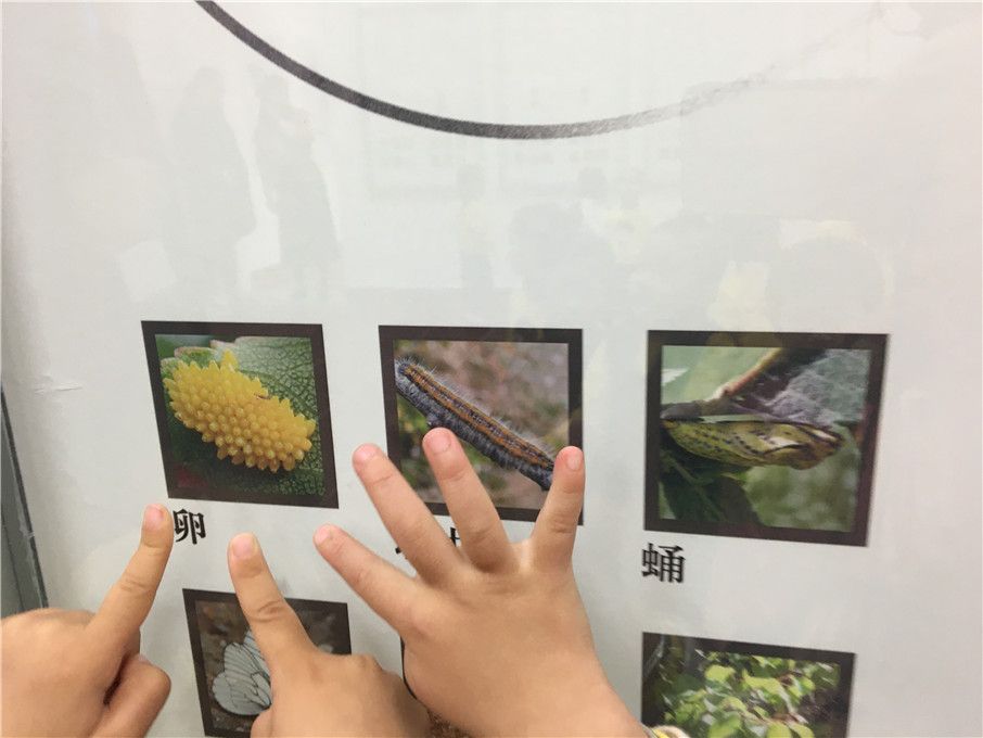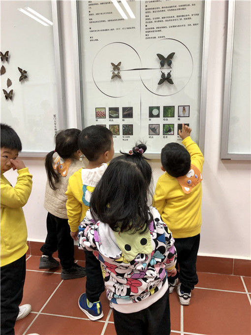 “看,这是蝴蝶的生长过程。”原来蝴蝶是从卵变成了蛹,再变成毛毛虫,最后蜕变成蝶的。“好神奇的呀!”萌娃们忍不住惊叹。