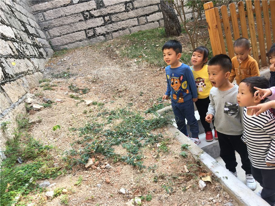 一次饭后的闲庭散步中,一白、一黄的蝴蝶飞来了啦!萌娃们对于蝴蝶的出现很是惊喜,追着蝴蝶跑着。在墙角的花丛中,黄蝴蝶好像在和萌娃们游戏,在花丛中停留了好长一会儿,这时候老师趁机引导萌娃们观察着蝴蝶的外形特征,飞行的动作等。萌娃们争先恐后地举手分享着自己的发现。