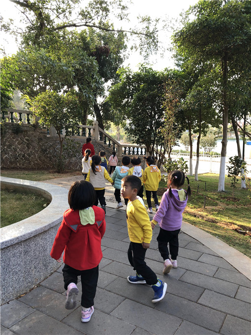 伴着冬日的暖阳,沿着校内的萌林小道向目地出发啦!一路上萌娃们欢歌笑语,不时欣赏美丽的校园风光