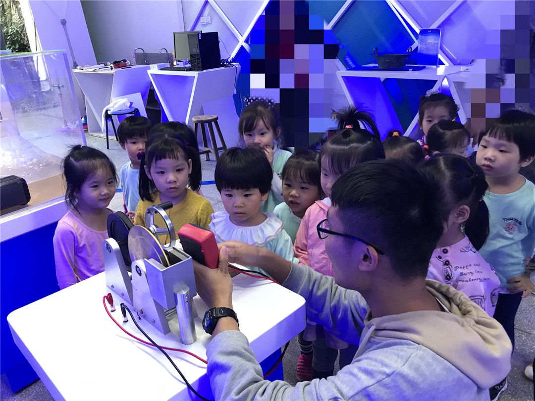 萌娃们带着兴奋、好奇和期盼来到了物理演示与探索实验室。馆内集科学性、趣味性、互动性于一体的展品,通过物理学中的力、热、光、电磁、吸引着萌娃们参与探索。
