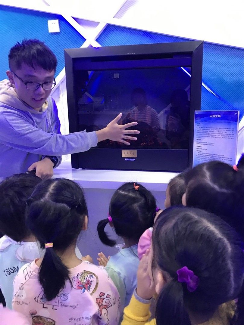 在大学生志愿者哥哥的讲解和示范下,萌娃们跃跃欲试,争着体验着各种各样的物理实验项目。