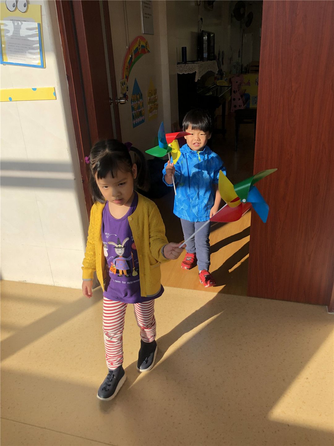 “要跑起来风车才会风起来”,小三班的萌娃们在探究怎样可以让风车动起来呢。