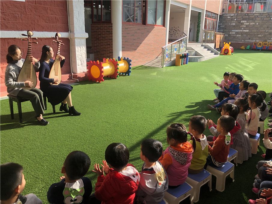 原来呀,泽妤爸爸是厦大艺术学院的老师,他带来的客人是他的学生,他们带来的“礼物”叫做乐器。泽妤爸爸给我们介绍,这些有的是我们中国的民族乐器,会发出好听的声音,弹奏出动听的乐曲。让我们也来试一试吧!