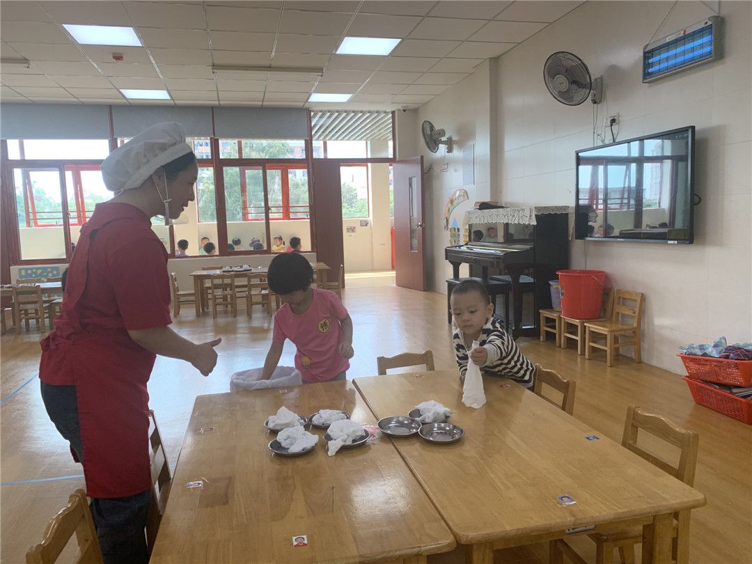 我们一边念儿歌,一边学习擦嘴巴,更认真更努力了!