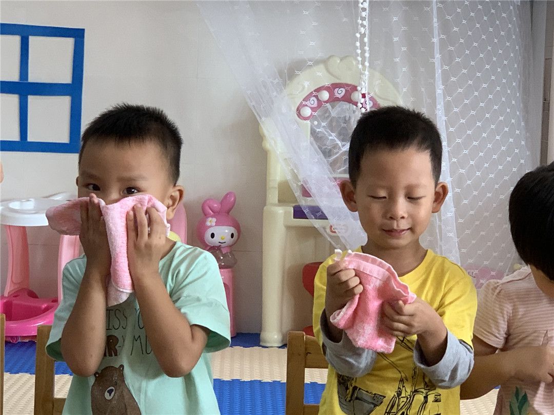 为了让我们记住擦嘴巴的好办法,老师编了一首儿歌:小毛巾四方方,捧手上擦嘴巴,一下、两下,小脸擦擦,小手擦擦,衣服也擦擦,擦得白又净,我是棒宝宝。