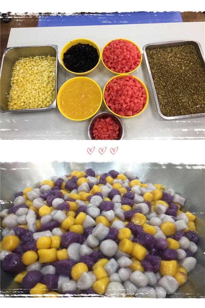 芋圆是用地瓜、紫薯还有芋头做的,它有漂亮的颜色、QQ弹弹的口感、还有丰富的营养哦。