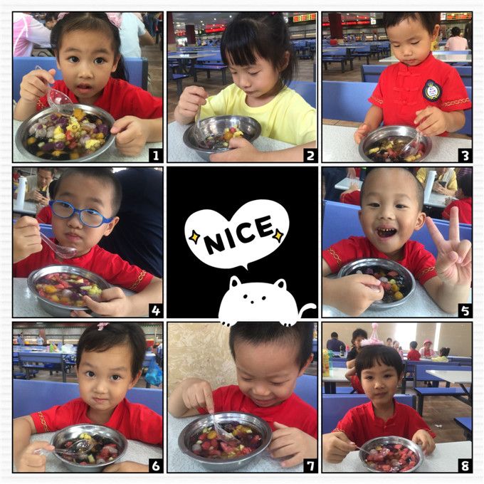 “哇哦,好好吃呀!”“老师,好Q啊!”“老师,我觉得吃起来软软的。”“老师,我还想再吃一碗”。