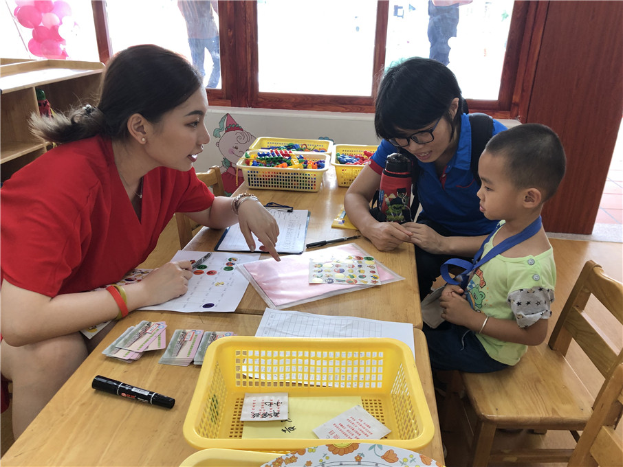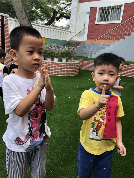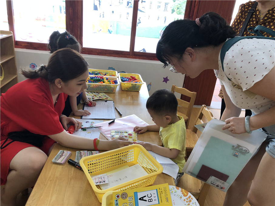 你叫什么名字呀?你最喜欢哪个标志?宝贝们在爸爸妈妈的陪伴下面对着新老师,大胆地回答问题。