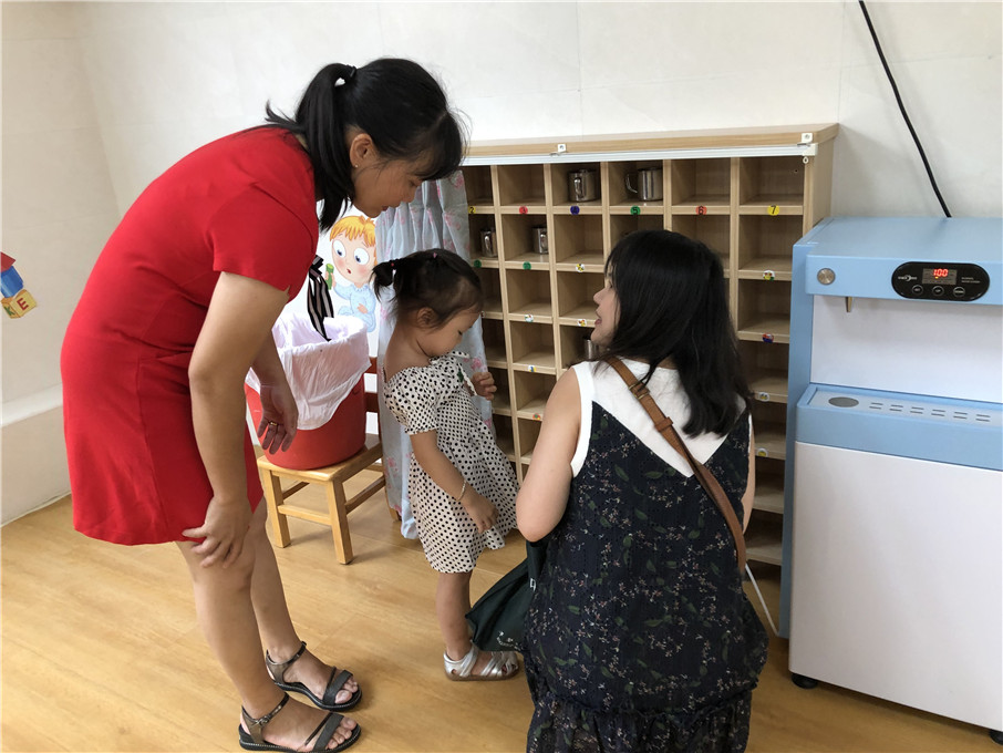 高高兴兴和爸爸妈妈说再见!爸爸妈妈,你们放心吧!